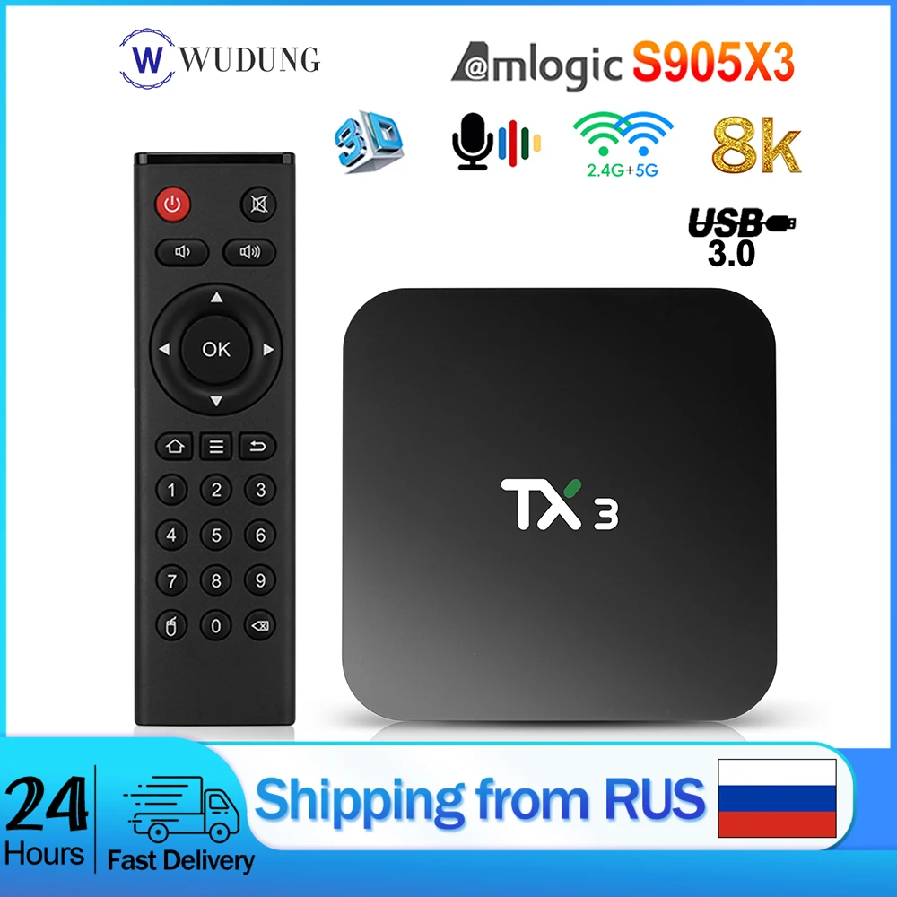 ТВ-приставка Tanix TX3 Amlogic S905X3 на Android 9,0, 8K, 4 + 3264 ГБ, 2,45 ГГц, Wi-Fi