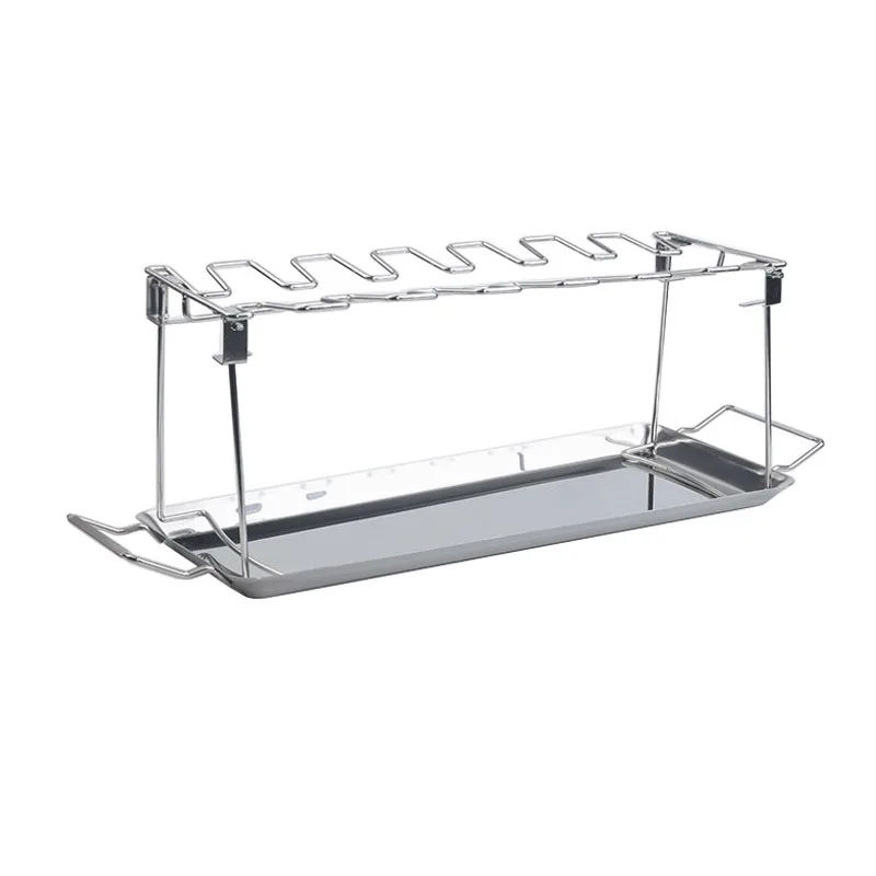 Нержавеющая сталь куриное крыло стойка держатель для гриля барбекю говядина курица нога крыло гриль стойка 14 слотов с капельным сковородом принадлежности для барбекю