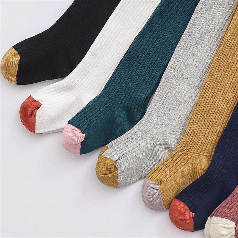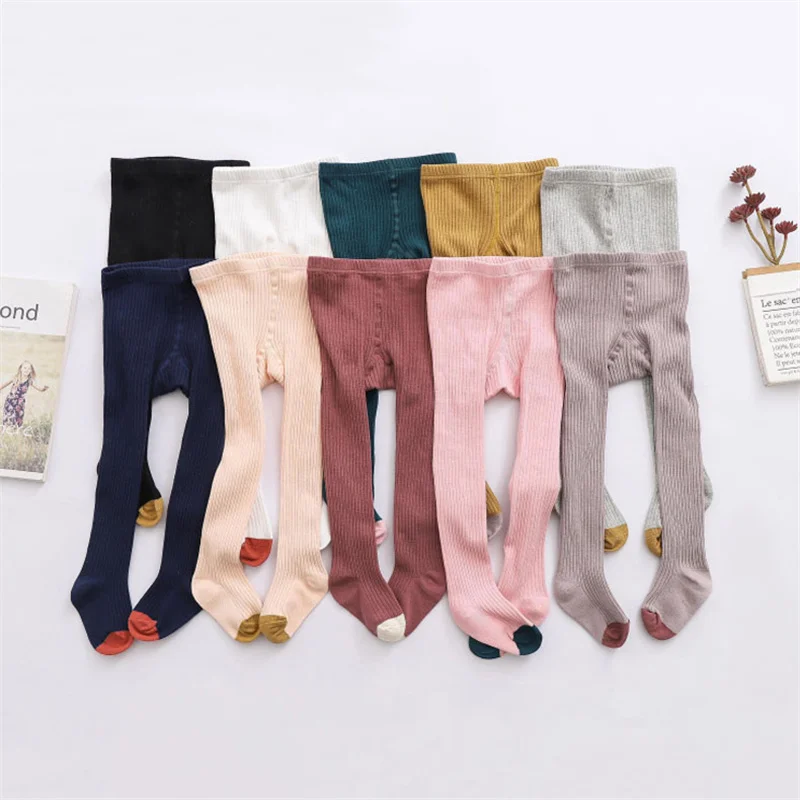 Осенне-зимние колготки для малышей носки в рубчик для маленьких девочек хлопковые теплые колготки ярких цветов для детей от 0 до 6 лет