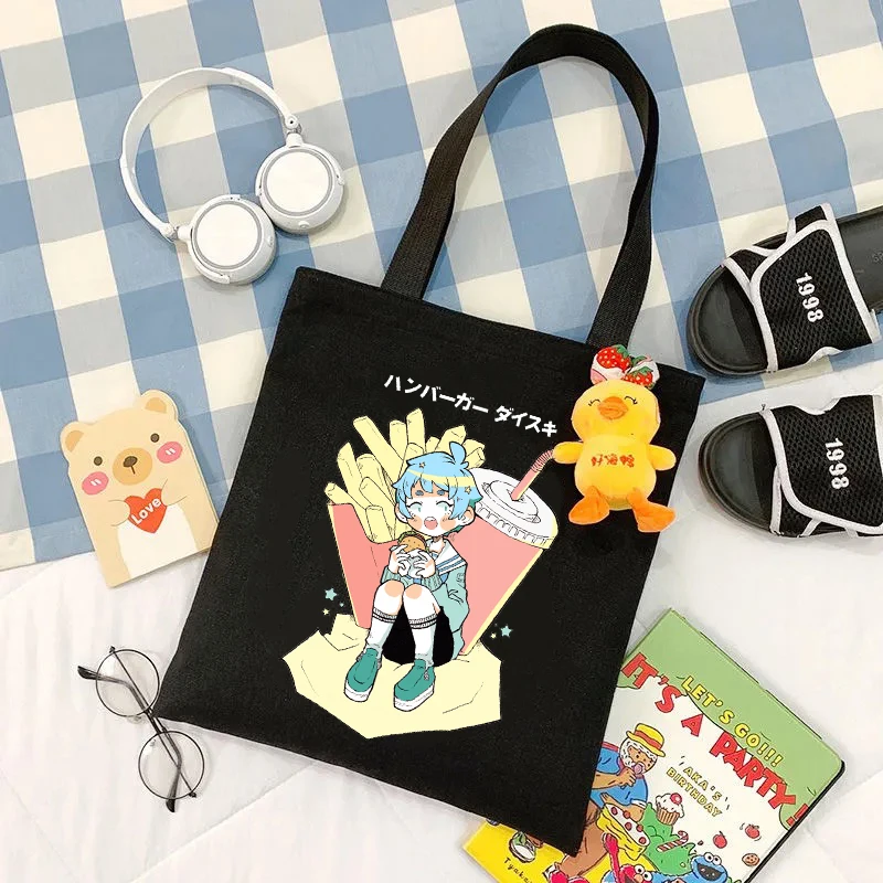 Женские сумки 2021 хит, милая сумка в стиле аниме, Harajuku, черная дизайнерская винтажная сумка через плечо Сумочка для покупок, холщовые женские сумки Ulzzang