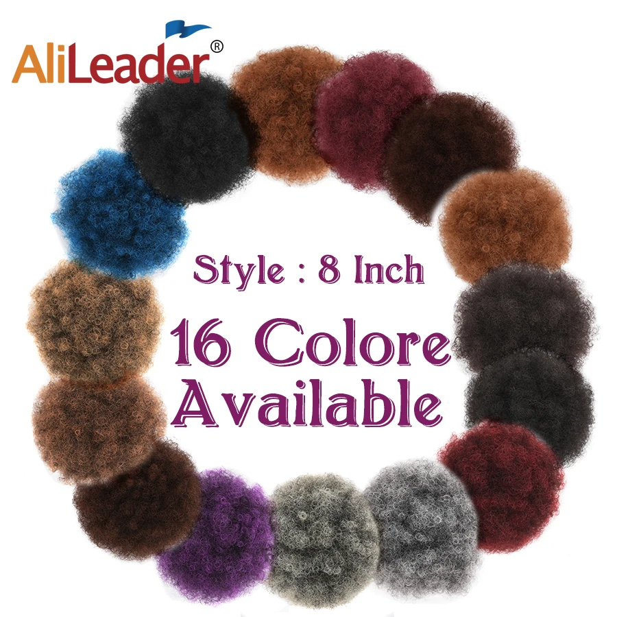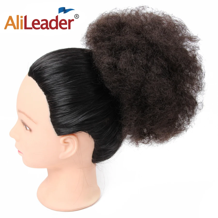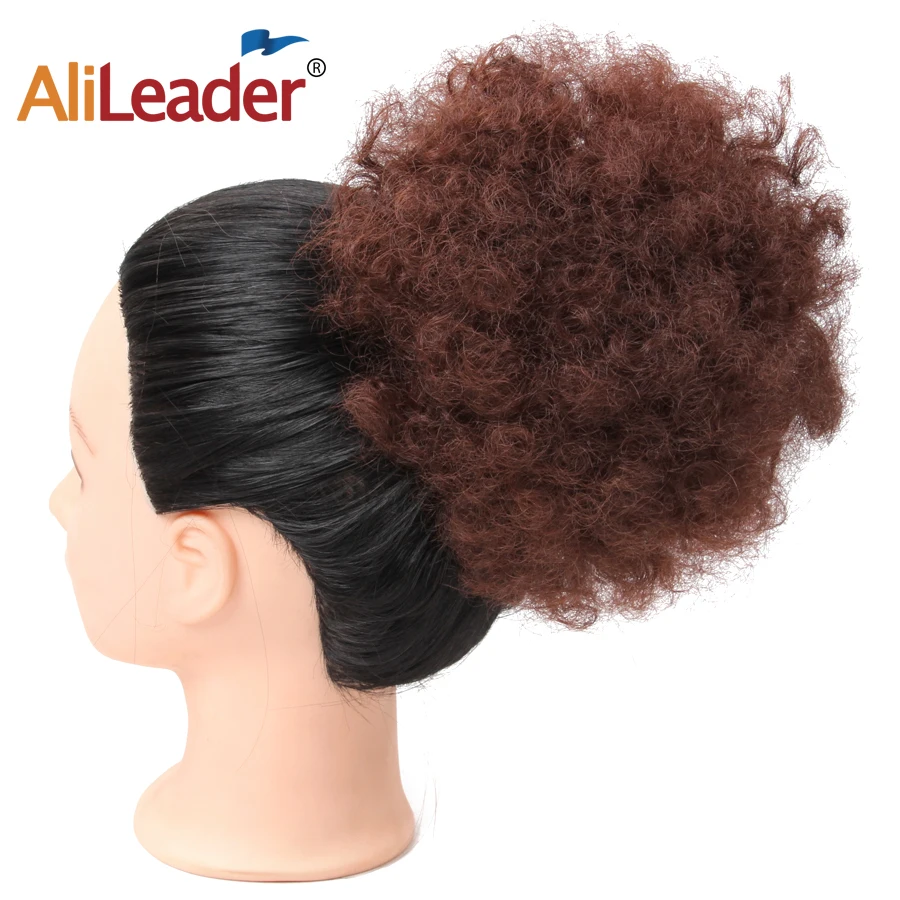 AliLeader Natural Clip In Afro Hair Bun Jet Black Brown Synthetic Kinky Curly Puff Ponytail Drawstring Extensions
