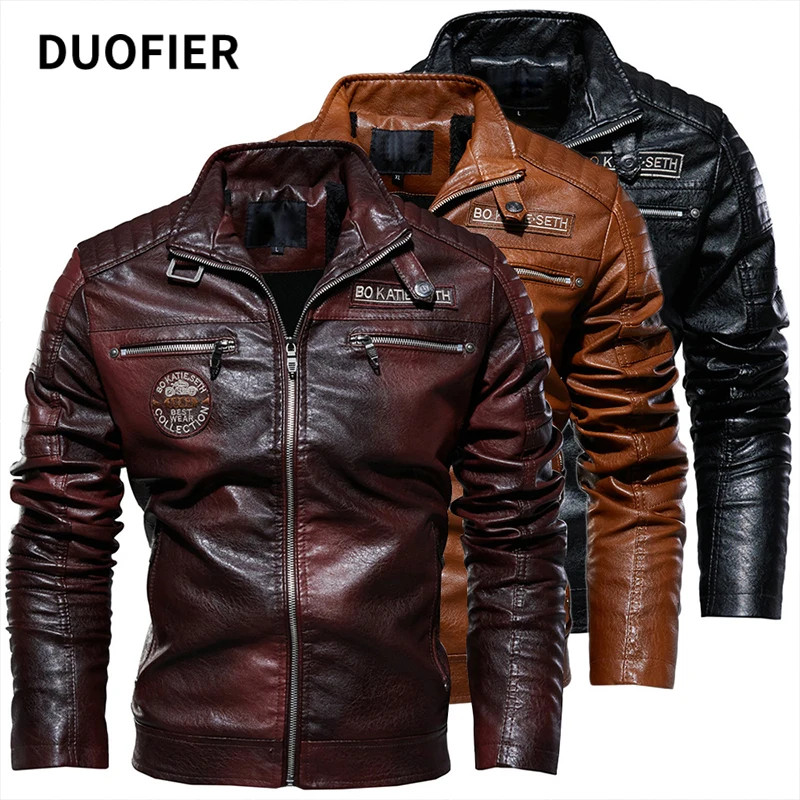 Новая кожаная куртка для мужчин, зимняя флисовая мотоциклетная курт...