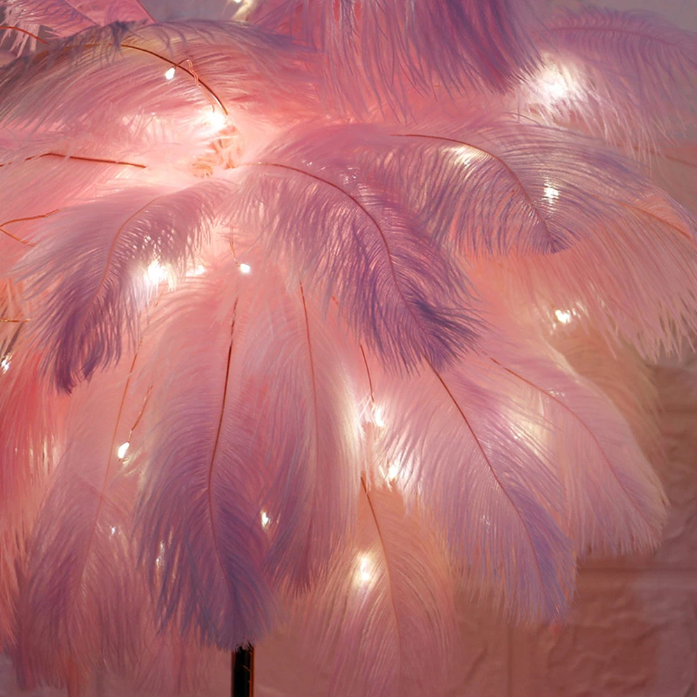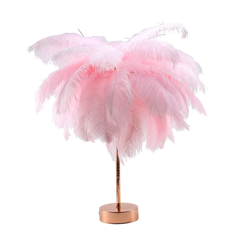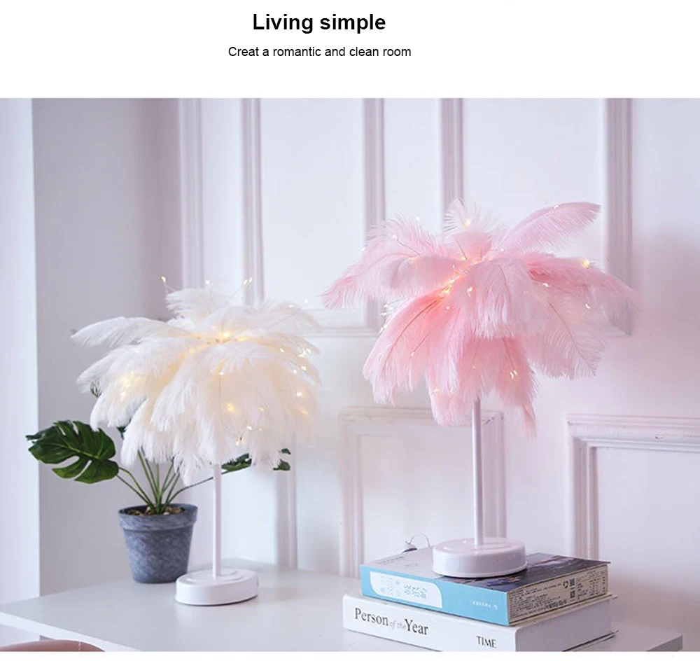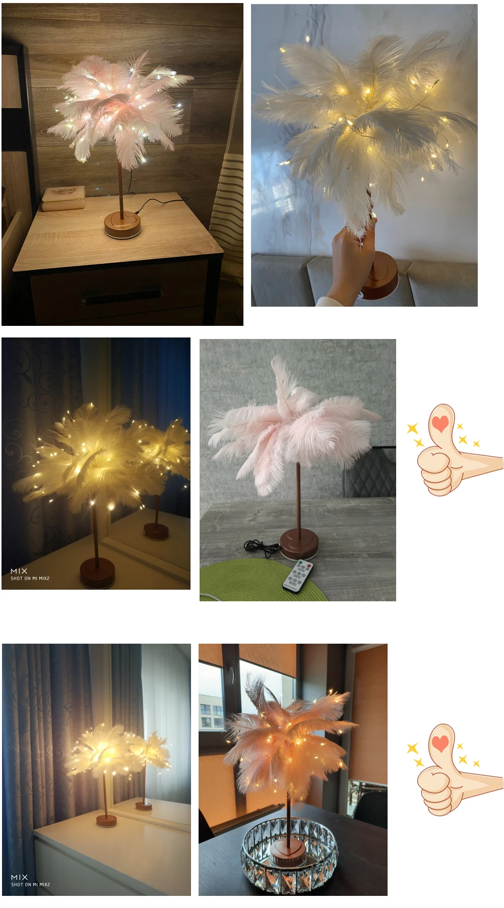 Питание от аккумулятора USB Настольная лампа с перьями страуса Пульт дистанционного управления DIY Fairy LED Tree Light для дома, гостиной, спальни, вечеринки, свадебного декора