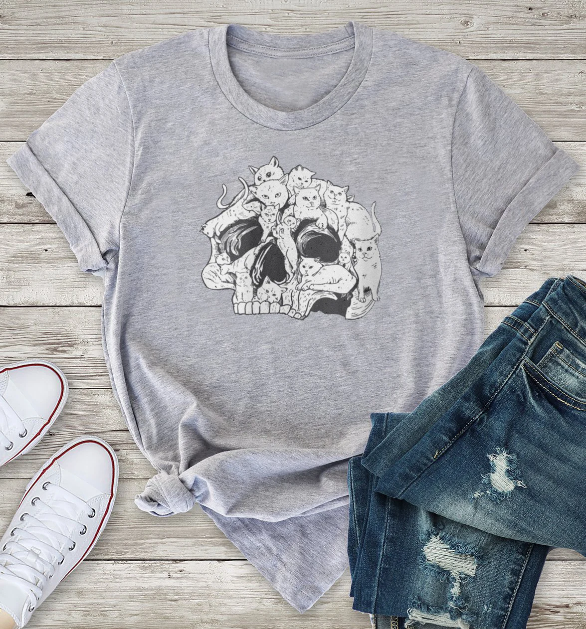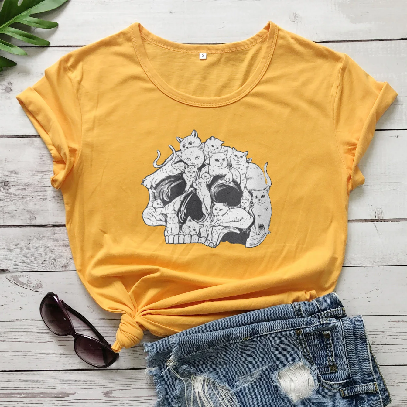 Женская футболка с принтом черепа, кота, 100% хлопок
