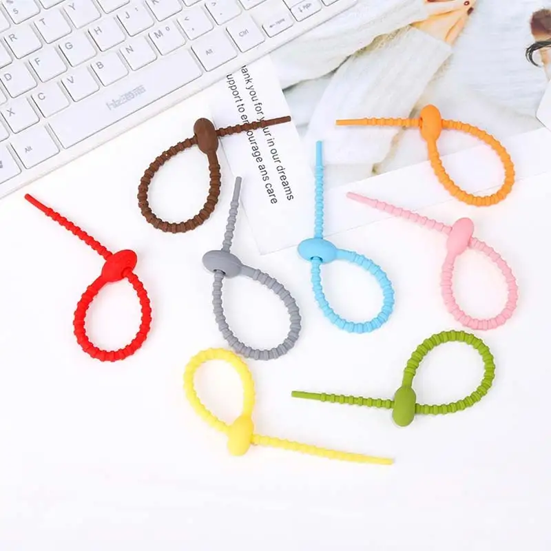 Многоразовые стяжки для кабелей, 20 шт., силиконовые стяжки на молнии, зажим для кухонных пакетов с едой, зажим для кабеля, для дома и офиса, органайзер для проволоки, уплотнительная веревка