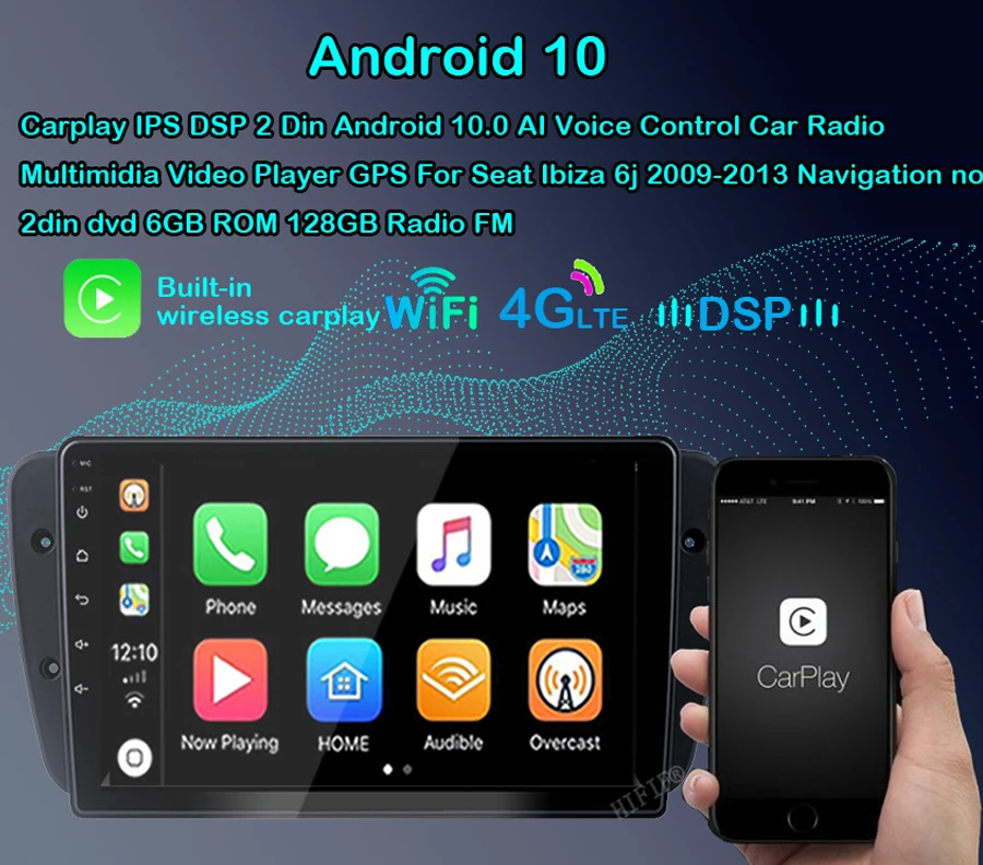 Carplay Android 10,0 AI Голосовое управление автомобильное радио Multimidia видео плеер GPS для Seat Ibiza 6j 2009-2013 навигация без 2din dvd