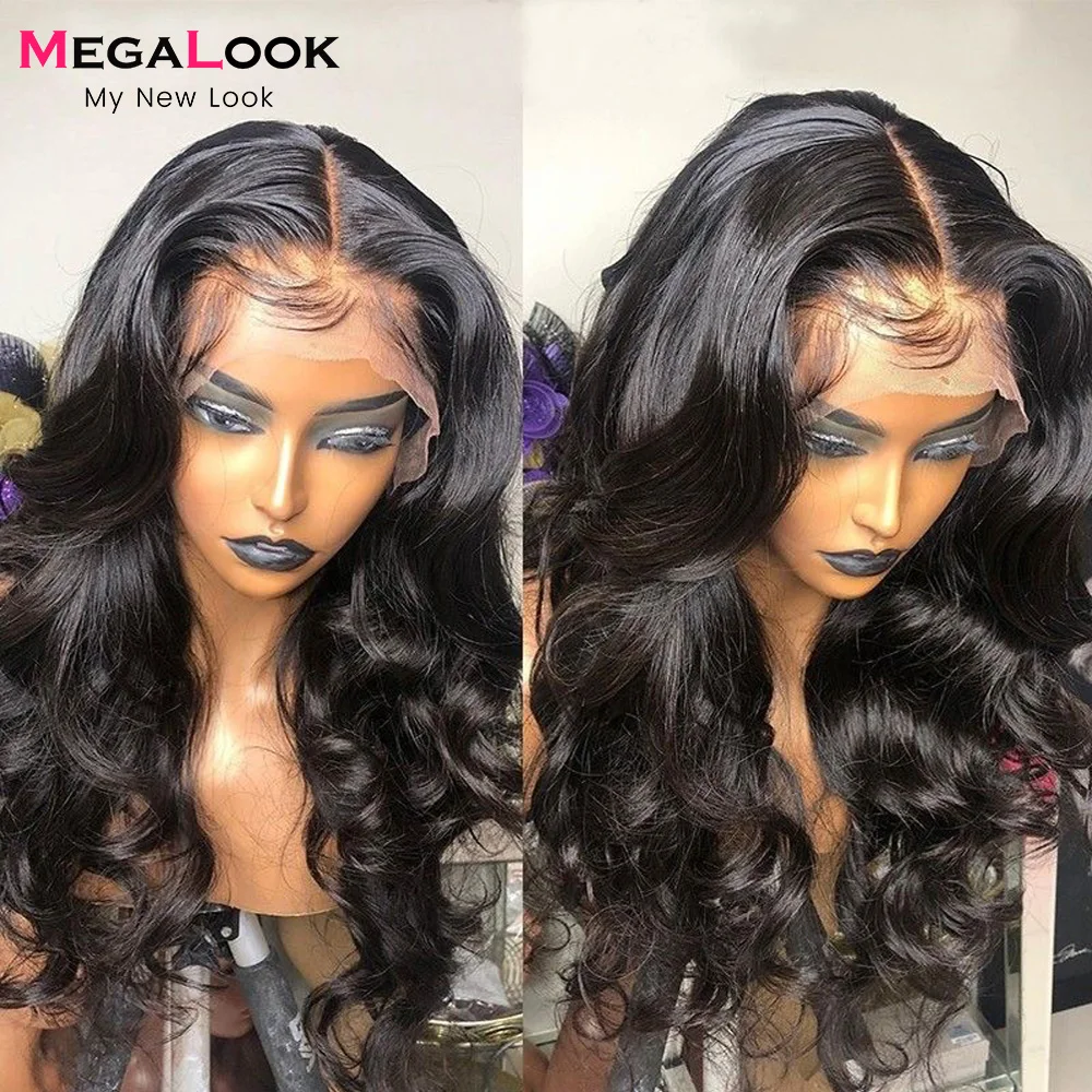 Парик на шнуровке средней части, парик на шнуровке Megalook 13x5x2 T, парик из натуральных бразильских волос без повреждений, предварительно выщипанные Детские волосы