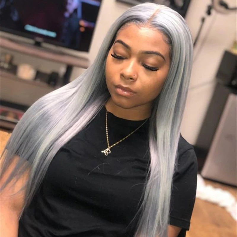 Парики из прямых человеческих волос серого цвета для чернокожих женщин, парики для косплея, парики с кружевной частью, бразильские серые неповрежденные волосы