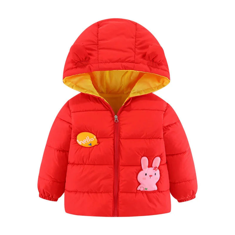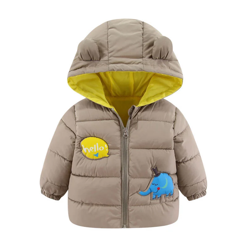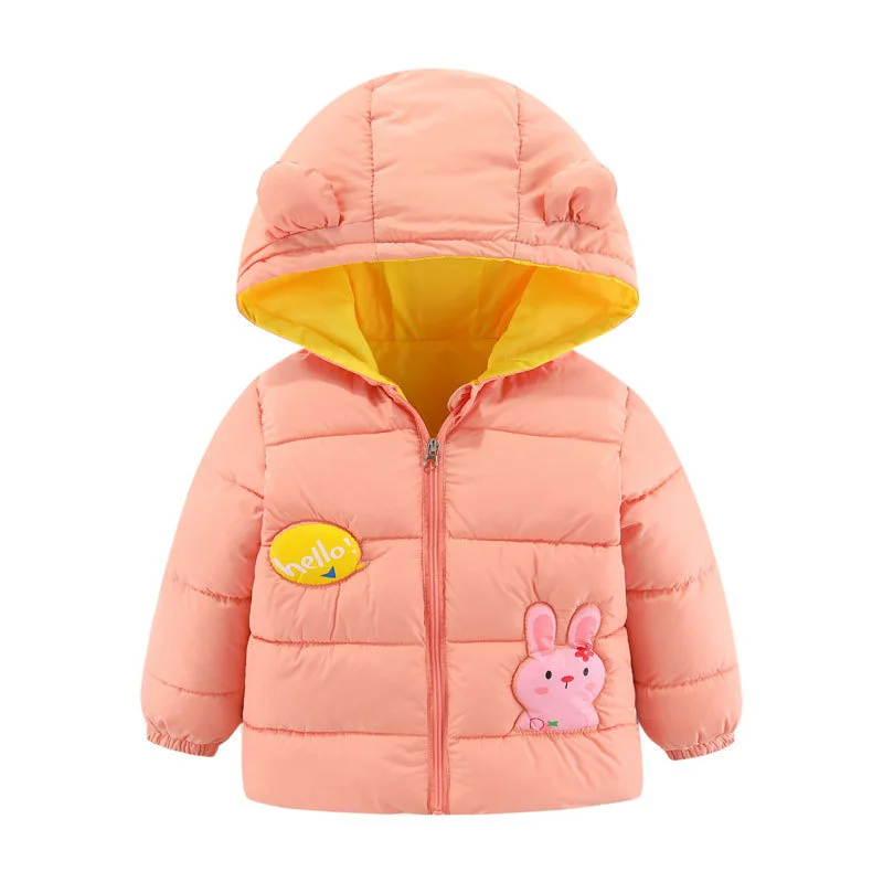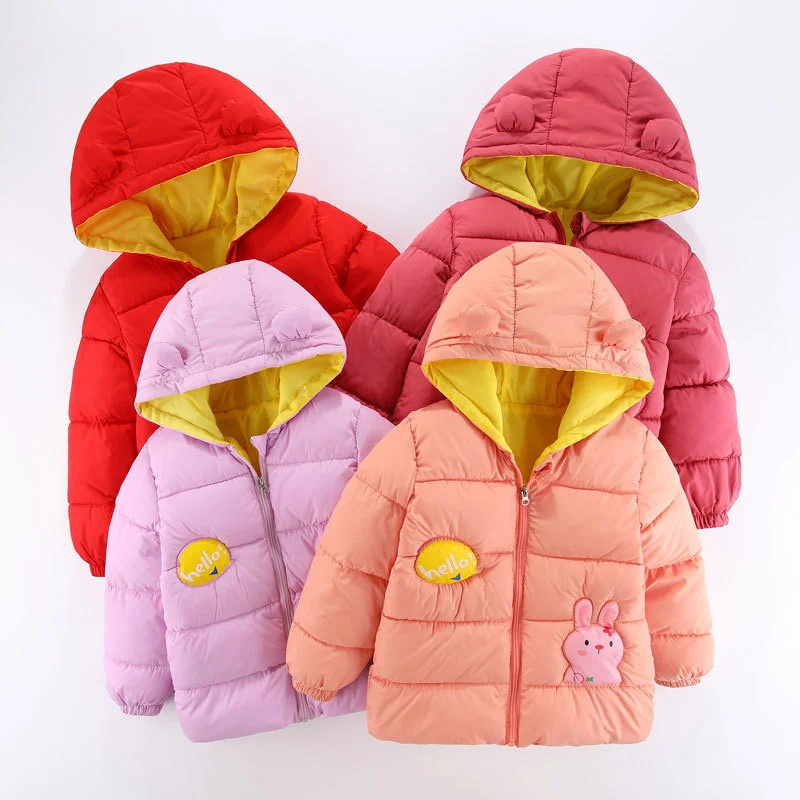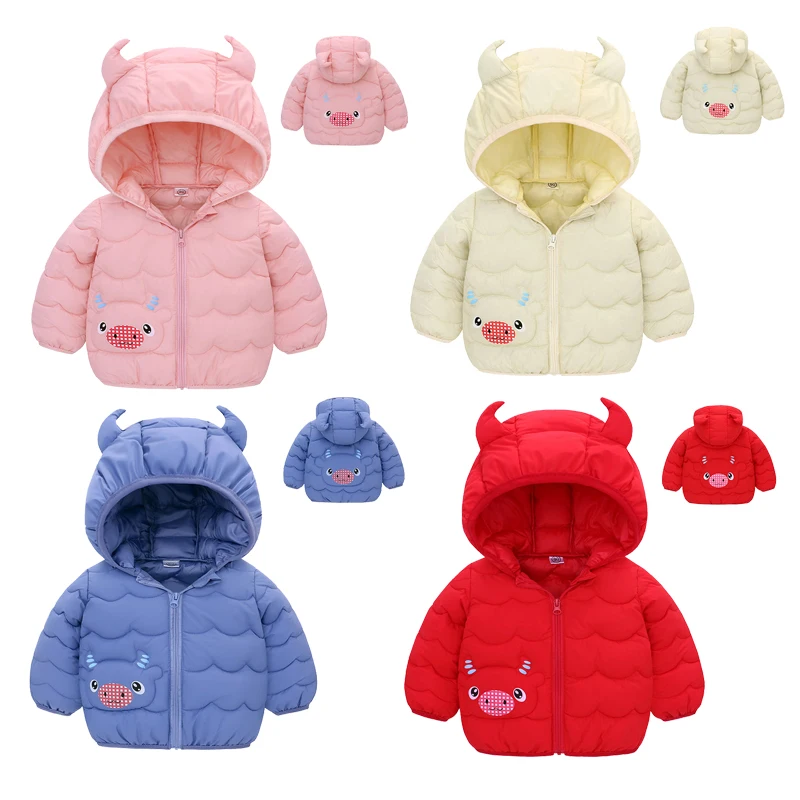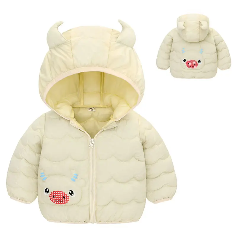 Пуховик с капюшоном для маленьких девочек, осенняя теплая куртка с мультяшным рисунком для мальчиков, куртка на молнии для маленьких девочек, 2021