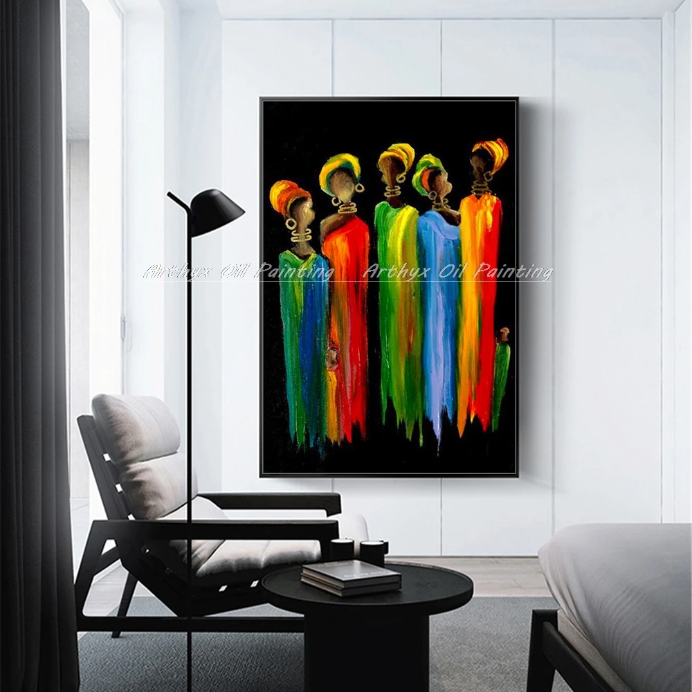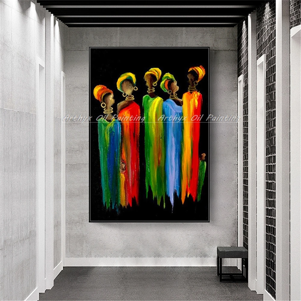 Картина маслом Arthyx на холсте, поп-арт, африканское племя, ручная работа, современная абстрактная Настенная картина для гостиной, украшение для дома