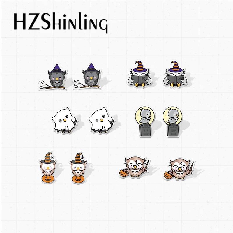 2021 Новое поступление милые серьги-гвоздики в виде совы на Хэллоуин граффити ручной работы из эпоксидной и акриловой смолы для детей