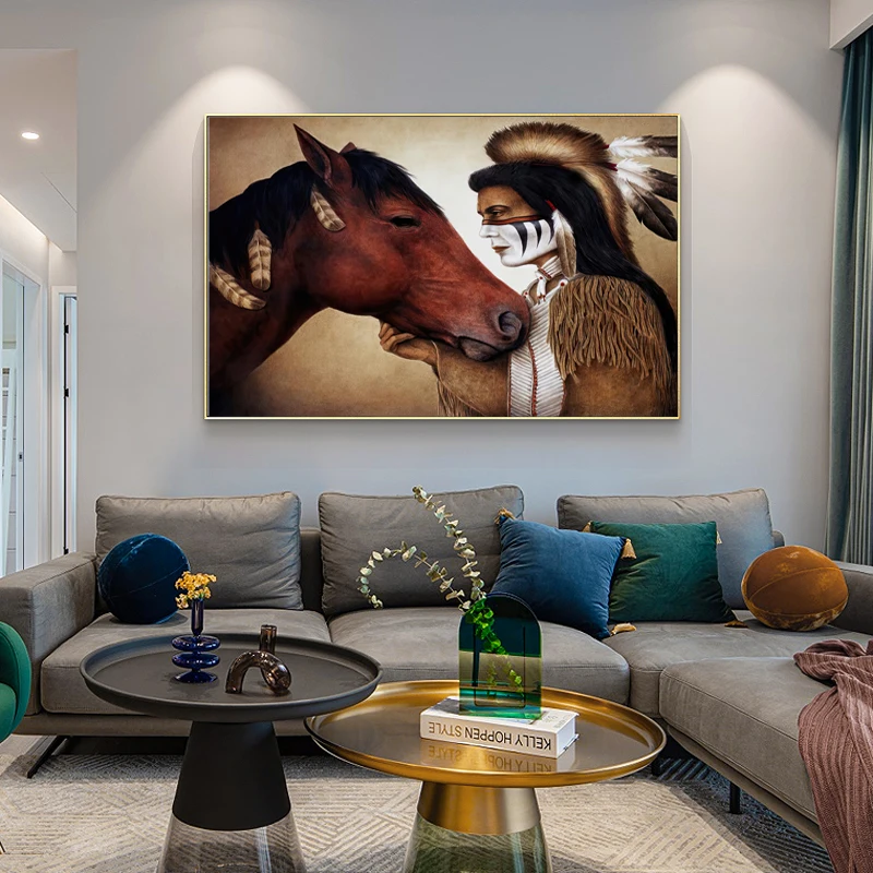 Оригинальная американская индийская Картина на холсте красная лошадь картина на стену художественный плакат Современная декоративная настенная Картина гостиная домашний декор