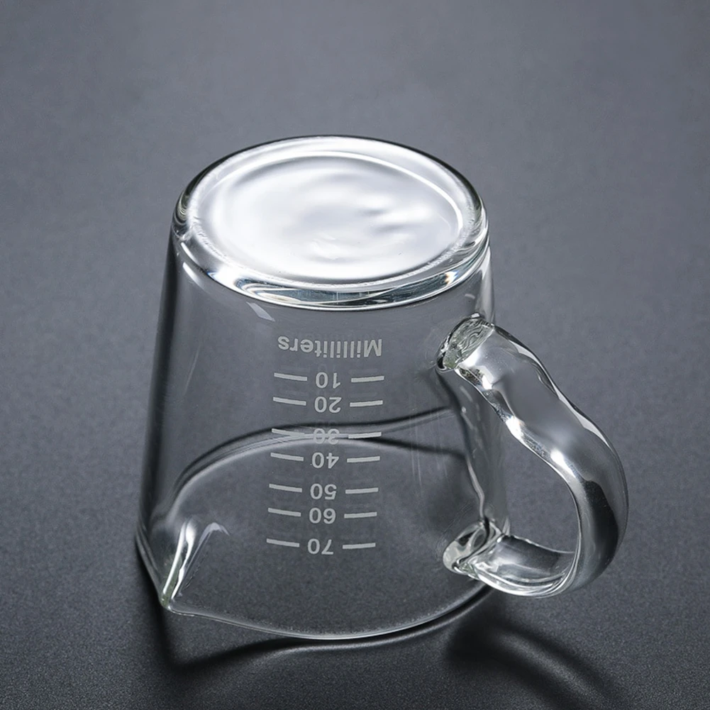 Мерный стаканчик из термостойкого стекла, 1 шт., 70 мл, чашка с двойным мундштуком, маленькая чашка для молока со шкалой для кофе эспрессо