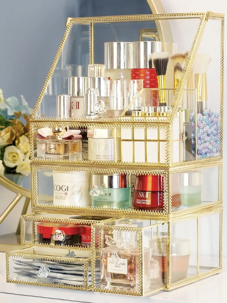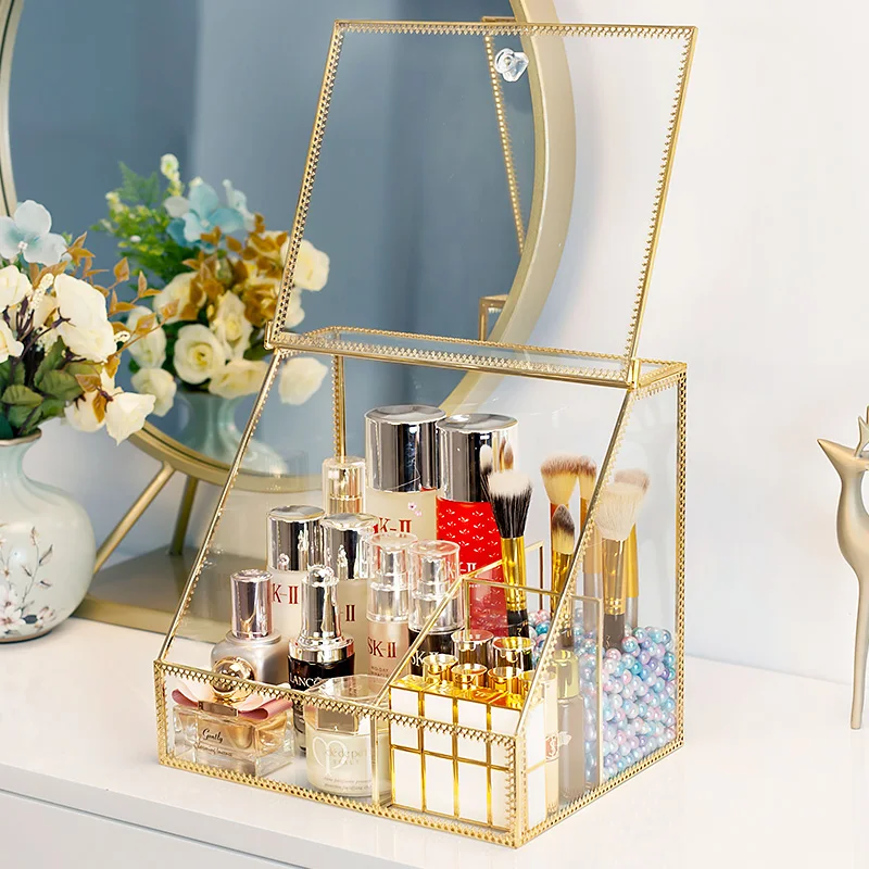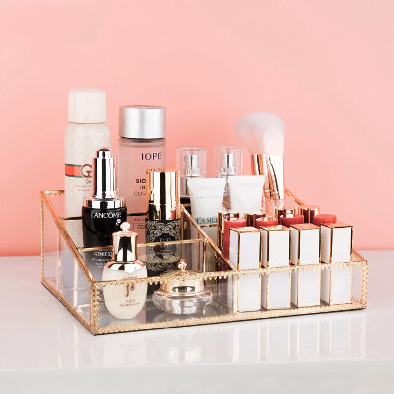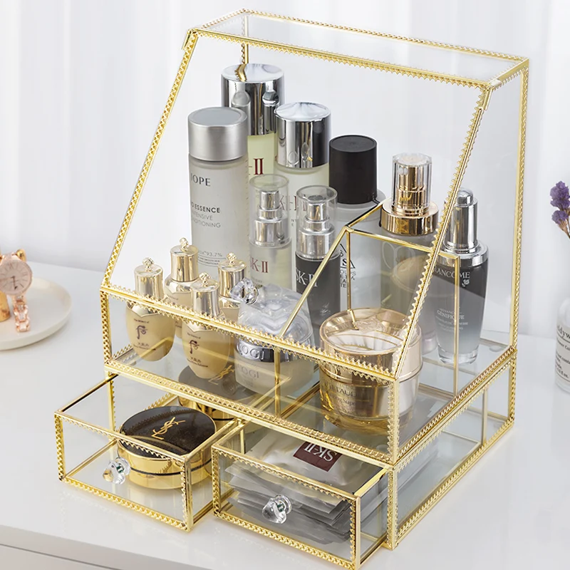 Прозрачный стеклянный ящик, органайзер для макияжа, большая настольная полка для ухода за кожей, ювелирные изделия, ожерелье, кольцо, ящик для хранения инструментов для макияжа