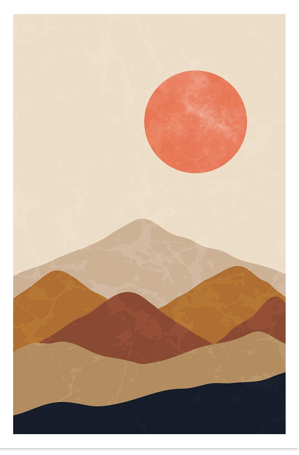 Абстрактная пейзажная живопись средневековая Солнечная сцена плакат...