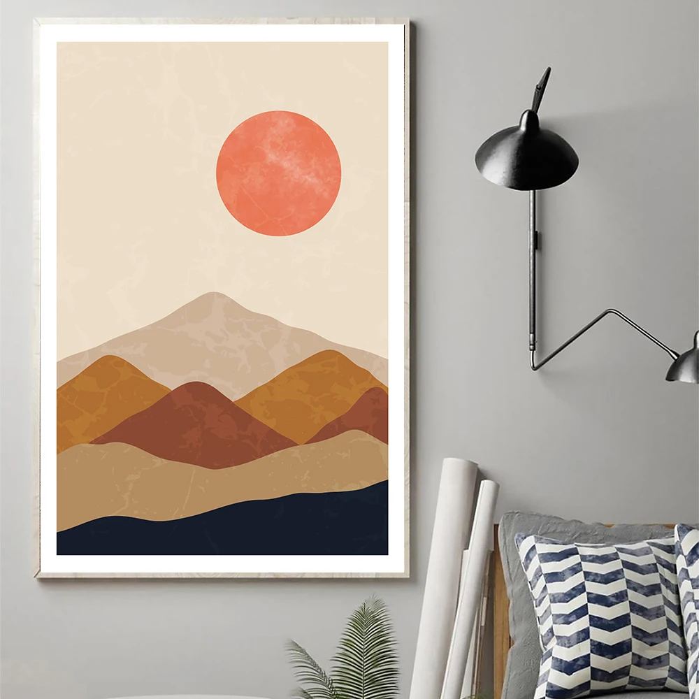Абстрактный постер с изображением гор, закат на пляже, Картина на х...