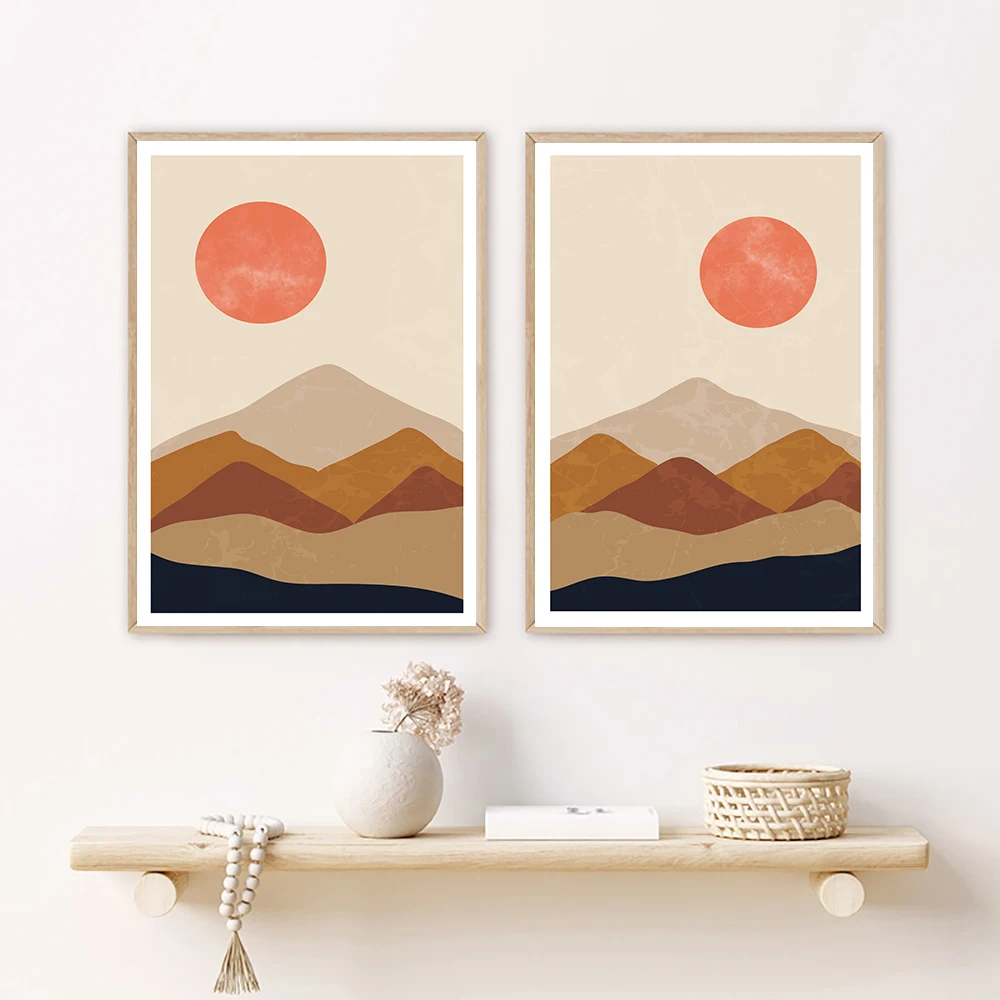 Абстрактный пейзаж бохо, скандинавский постер и принты, Женский рис...