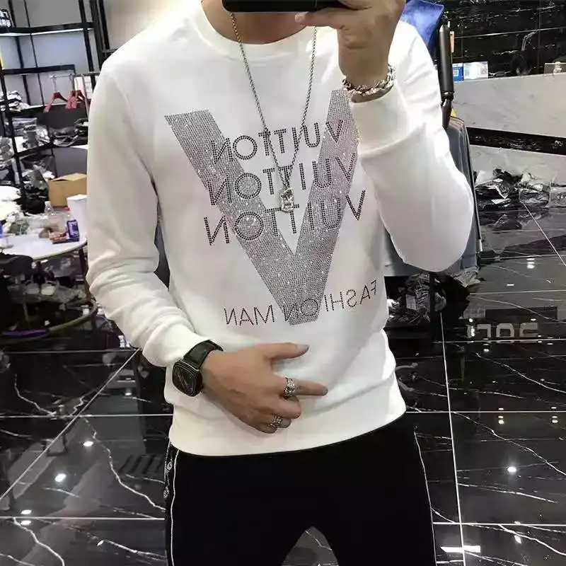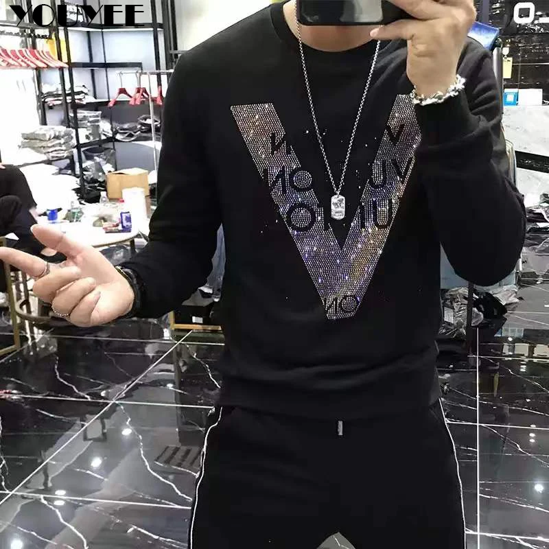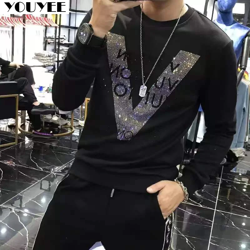 Стразы, мужские толстовки, уличная одежда, теплый мужской свитер с ...