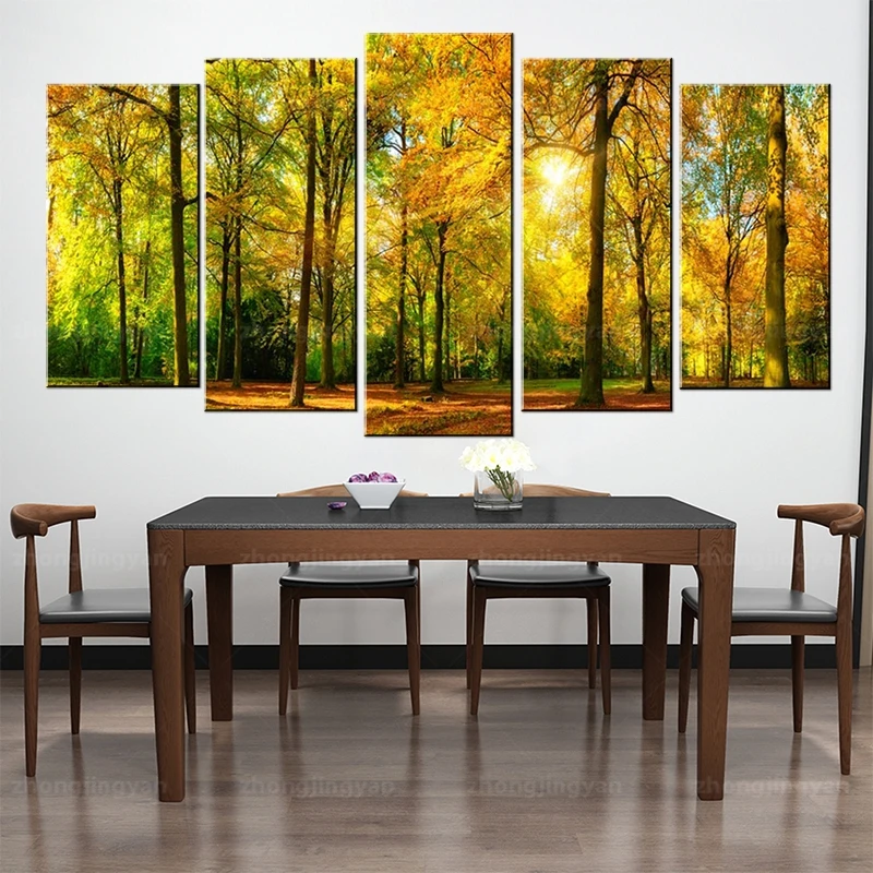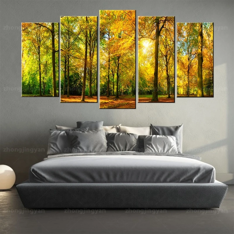 5 шт., настенные картины на холсте, осень, солнечный свет, лесные деревья