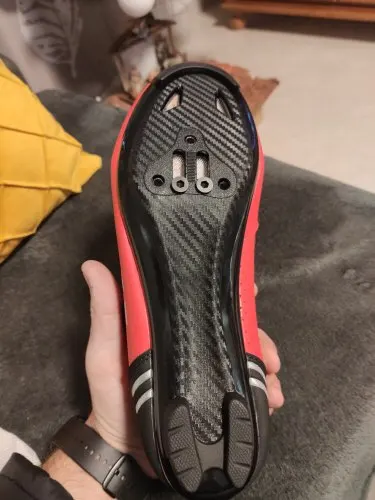 - Из описания создается впечатление, что подошва - карбон. На самом деле - нейлон с рисунком под карбон,. Это, правда, указано в характеристиках. - Шло относительно долго 3 недели (через Новосибирск). + Классный вид. + Удобные. На размер стопы 27,3 44 полностью подошел. Попробовал проехав 100 км - нормально. + Через день после заказа написал продавцу о замене серых на красные. Заменил.