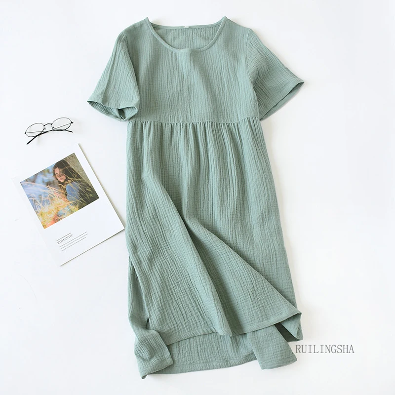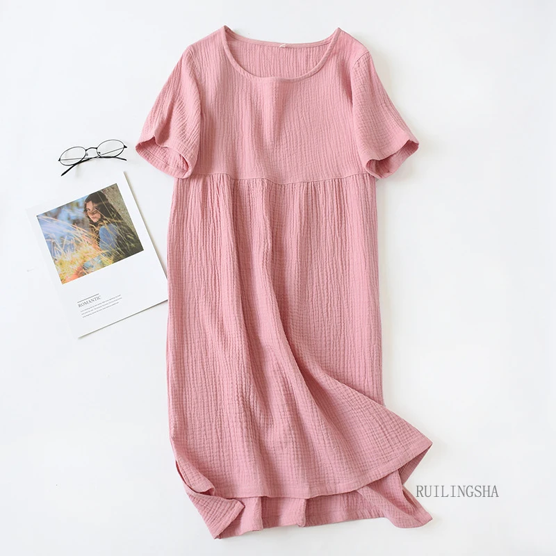 Летняя одежда для сна из 100% хлопка и крепа, рубашки для сна с коротким рукавом, свободные ночные рубашки, женская ночная рубашка, сексуальное платье для сна