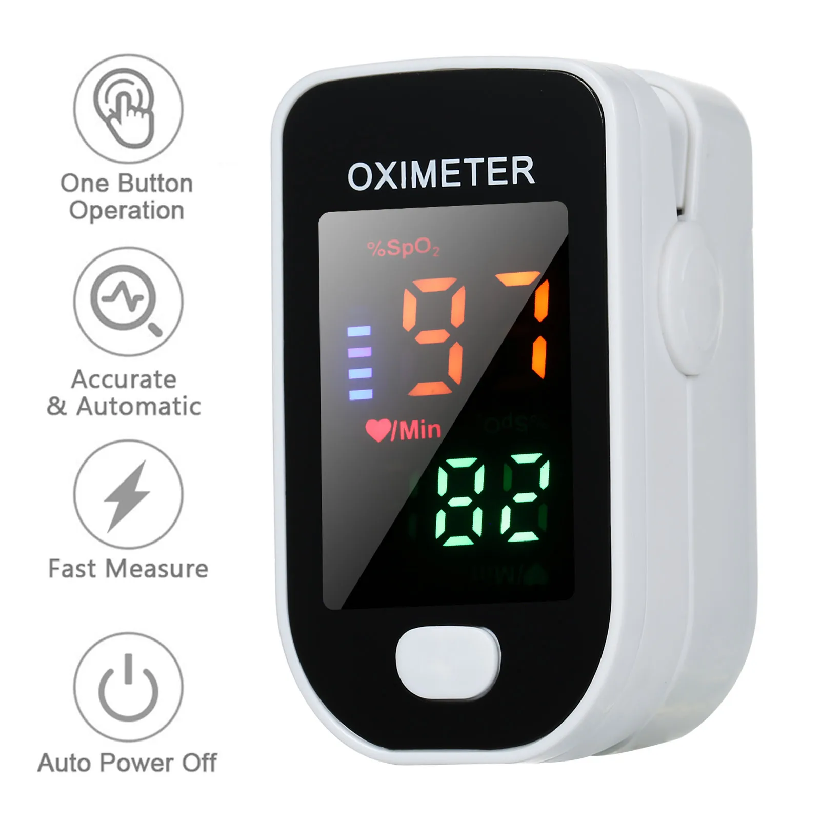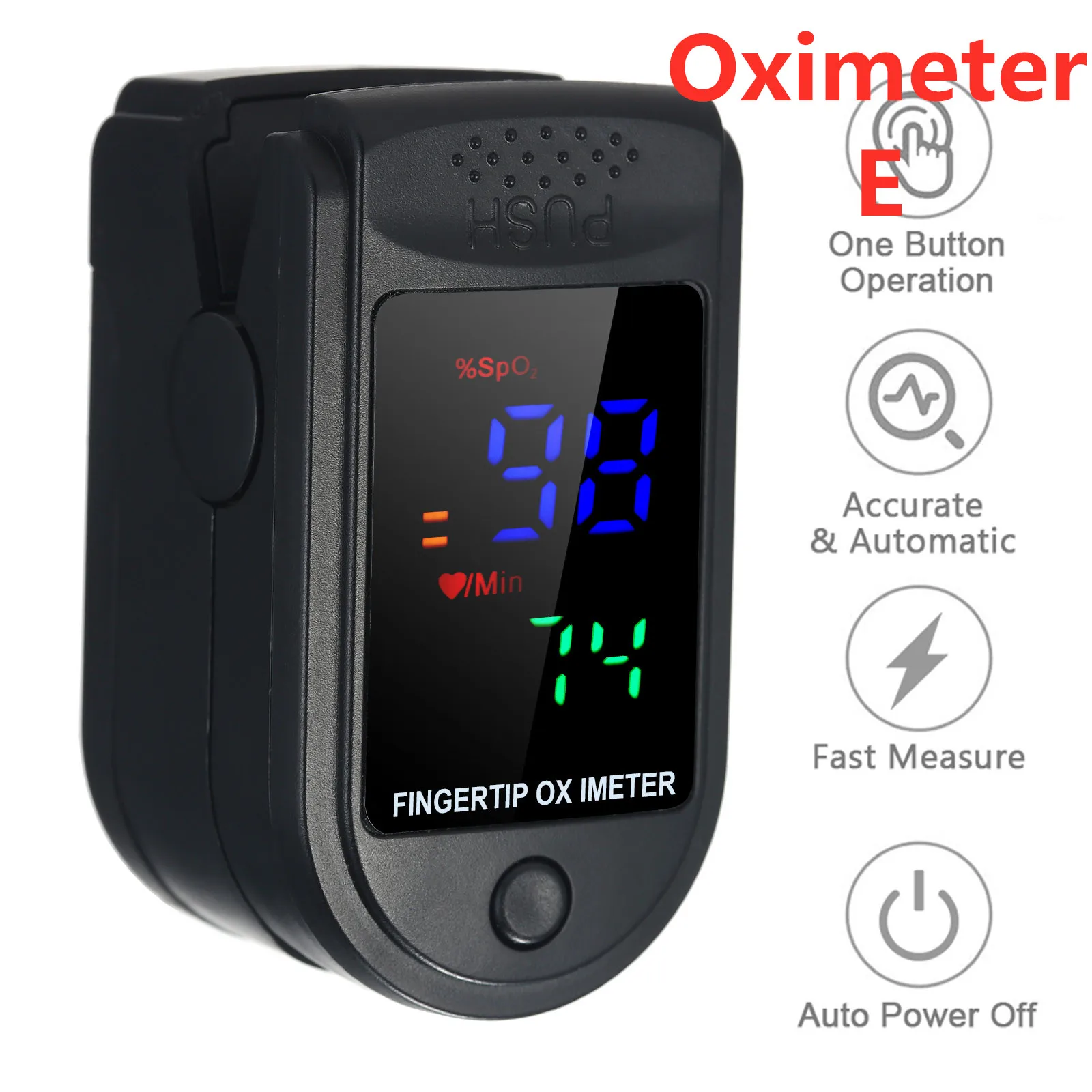 Оксиметр можно использовать для измерения насыщения кислородом, частоты пульса через палец. Изделие подходит для семьи, личной гигиены в спорте и т. Д.
