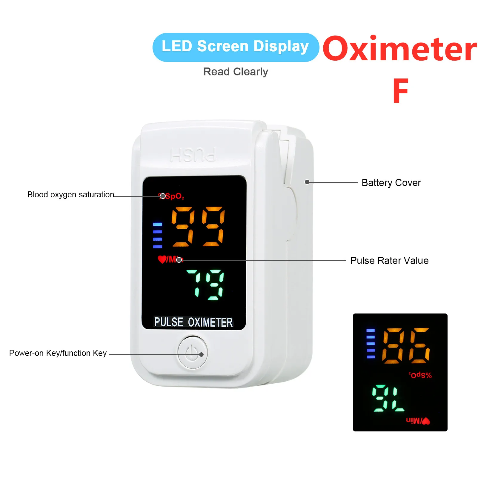 [Светодиодный дисплей]: низкое энергопотребление, светодиодный четкий дисплей, 2 направления можно отрегулировать для удобного чтения. Даже пожилых людей, также могут точно и легко считывать значения оксиметров. Удобный и компактный, портативный для использования дома или в путешествиях.