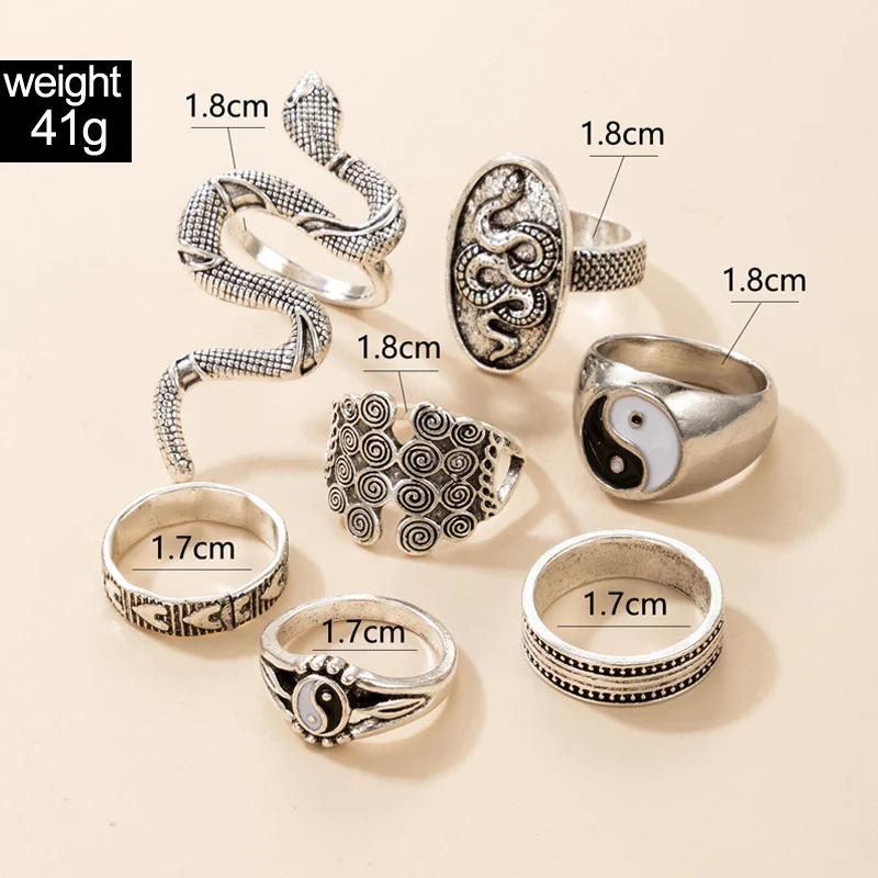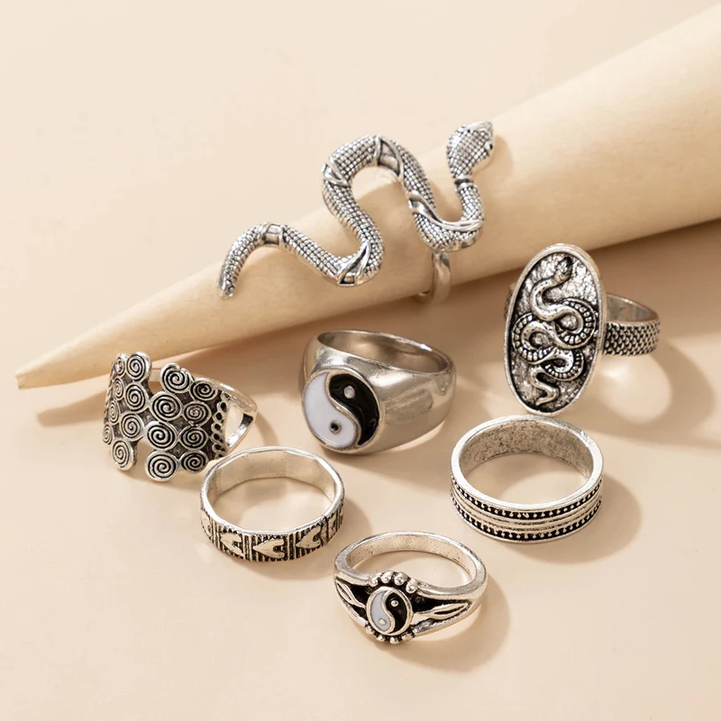 Кольцо Tocona 7 шт.компл. в стиле панк Тай Чи со змеиным кольцом для женщин и мужчин винтажное женское кольцо с резьбой геометрической формы 19693