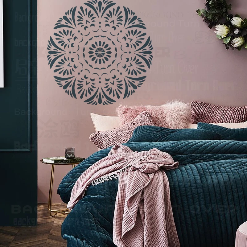 80 см-110 см трафаретная краска для украшения стен краска на дверь огромная Мандала потолок индийский арабский этнический круглый S159