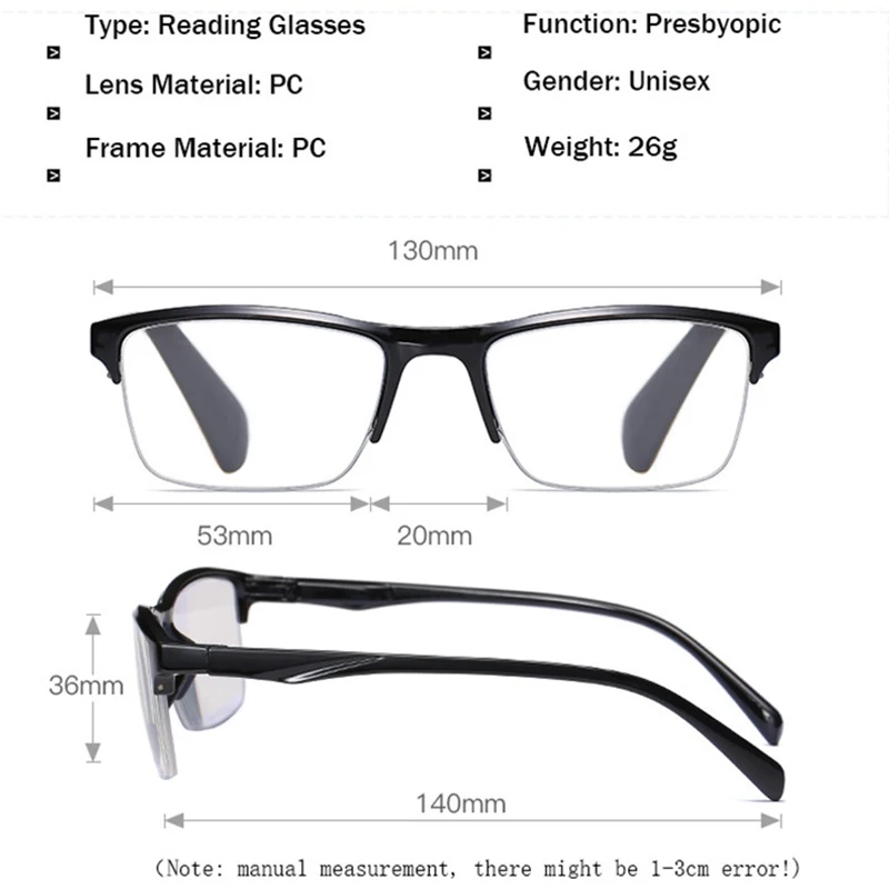 Очки для чтения с квадратной полуободковой оправой для мужчин и женщин, ультралегкие пресбиопические с диоптриями, + 125, 175, 225, 275