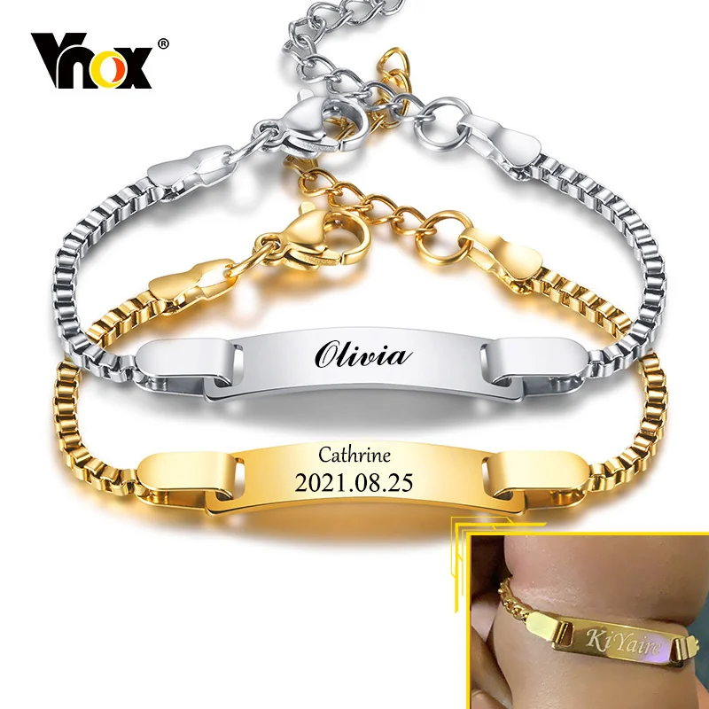 Браслеты Vnox с именем для новорожденных, антиаллергенные браслеты из нержавеющей стали для девочек, индивидуальные подарки
