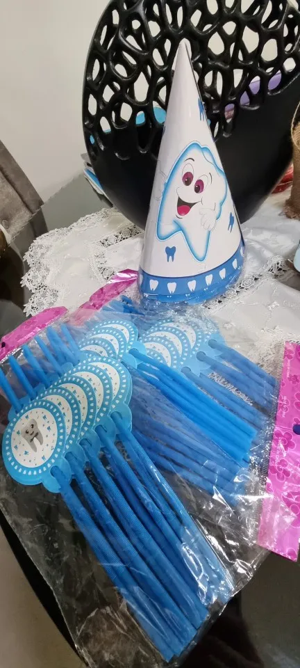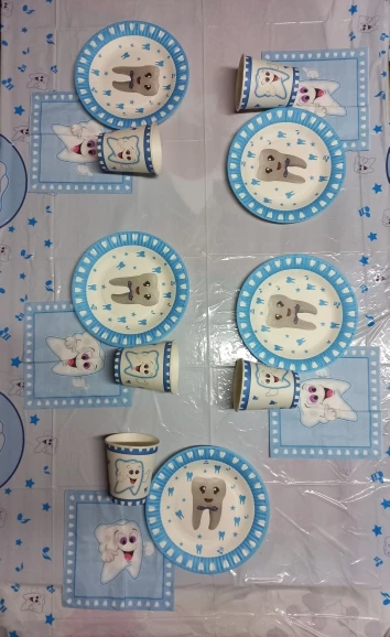 Детская одноразовая посуда для первого зуба с рисунком зубов для мальчиков