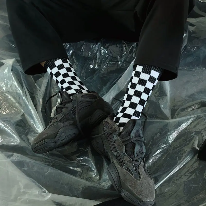Носки в Корейском стиле Харадзюку, модные уличные спортивные, с принтом, для скейтборда, геометрические, в стиле хип-хоп, шахматные, в стиле хип-хоп