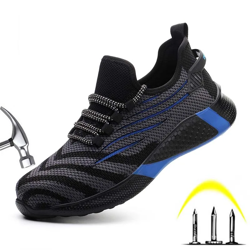 Легкие дышащие мужские защитные ботинки со стальным носком, рабочие ботинки для мужчин, Нескользящие строительные кроссовки со светоотражающим элементом