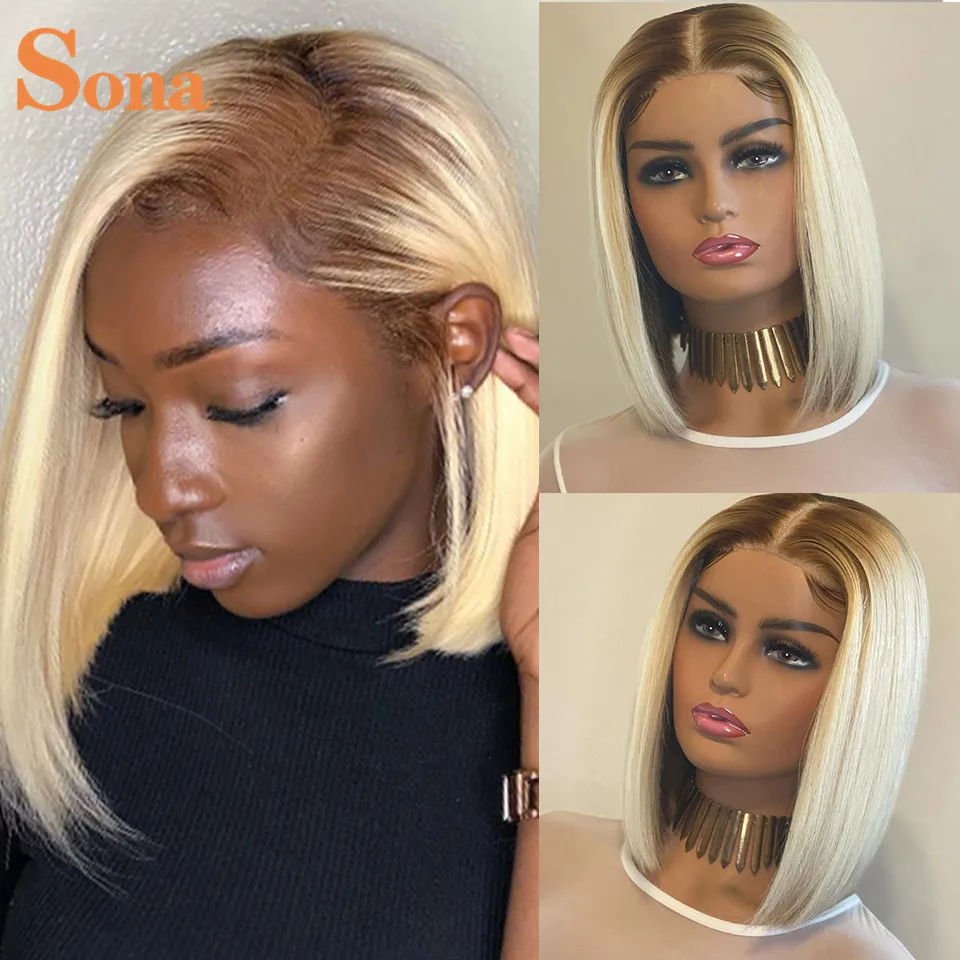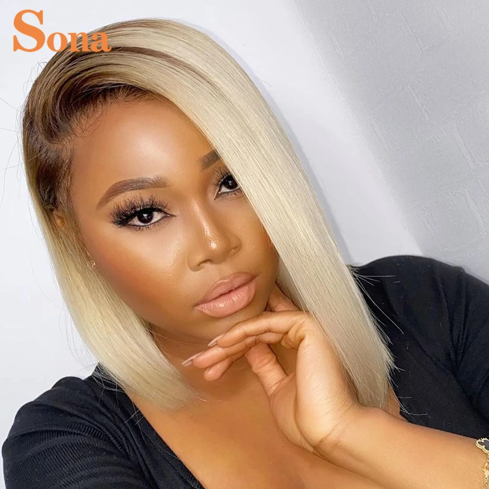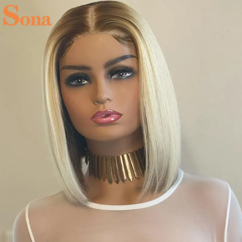 Парик Омбре 4613 медово-светлый Боб, прямой парик с 613 застежкой, короткий парик из человеческих волос с кружевом спереди, цветной парик со шнуровкой спереди, парик с вырезом Фаллоу