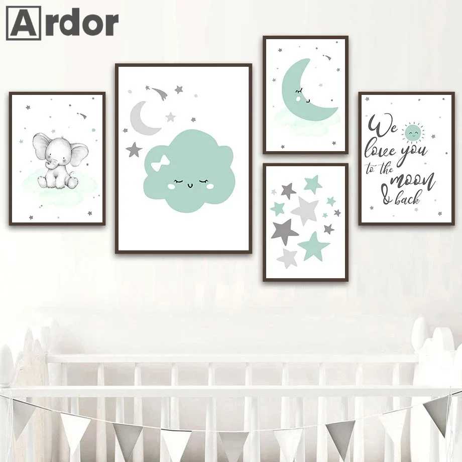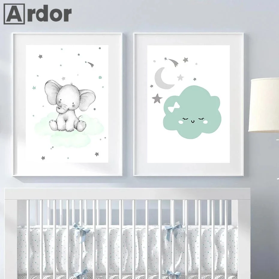 Абстрактный слон, настенный плакат, облако, звезда, художественный ...