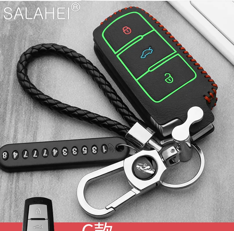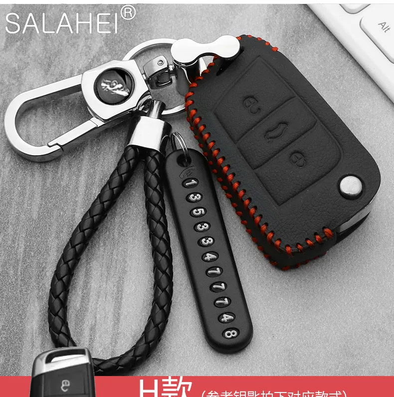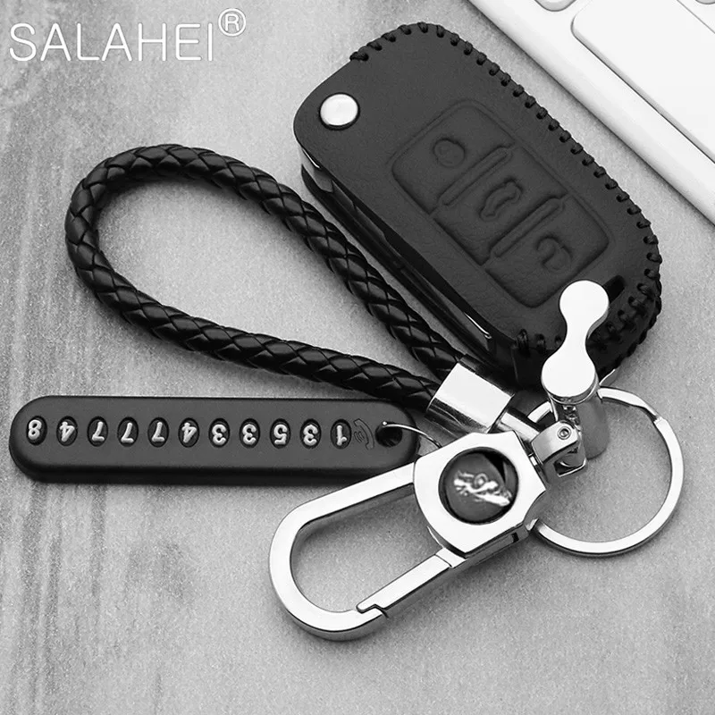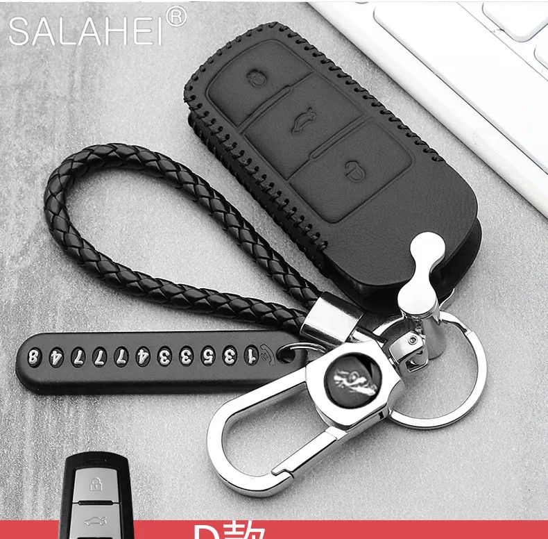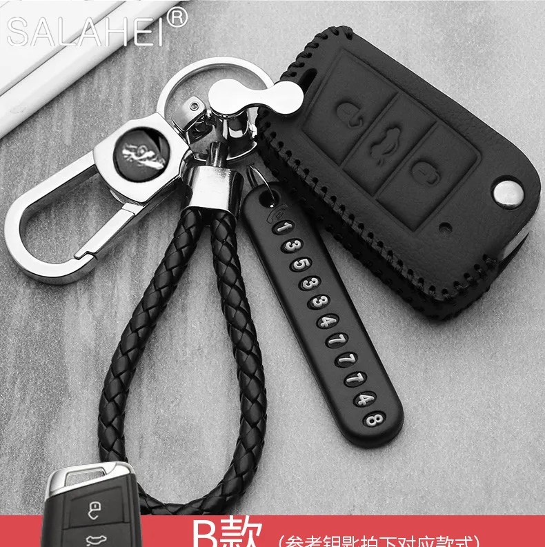 Чехол для автомобильного ключа, кожаный, для VW Volkswagen, Polo, Golf 6, 7, MK7, Tiguan, Passat B6, 3C, B7, B8, Magotan CC, Skoda Octavia, Kodiaq, Karoq, A7