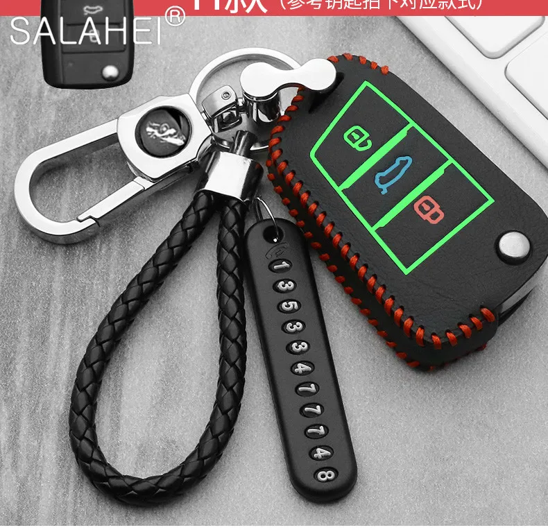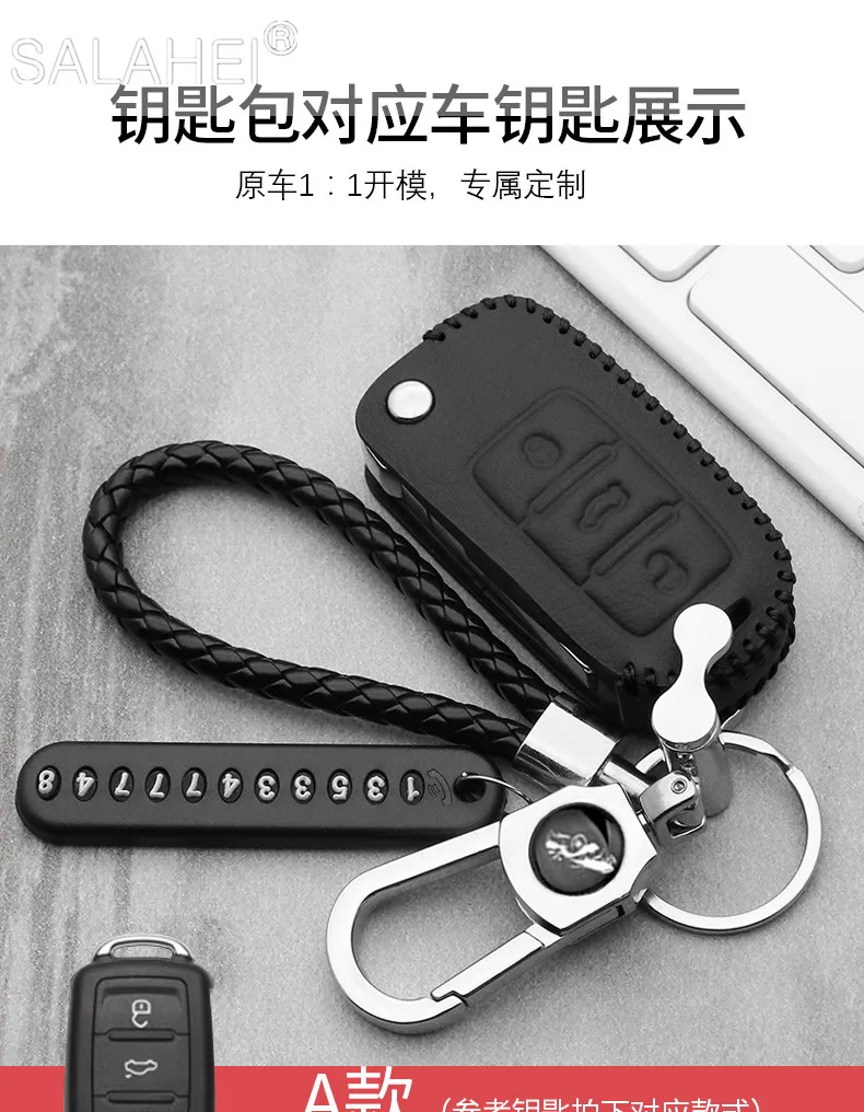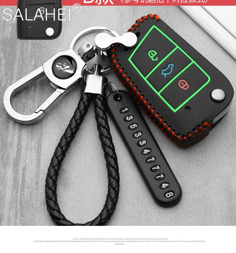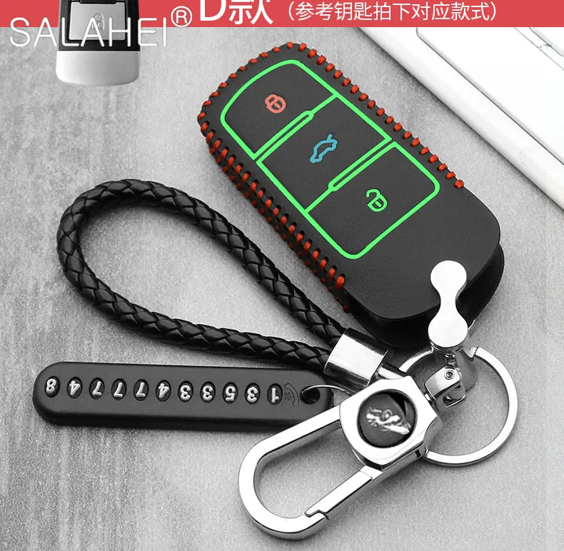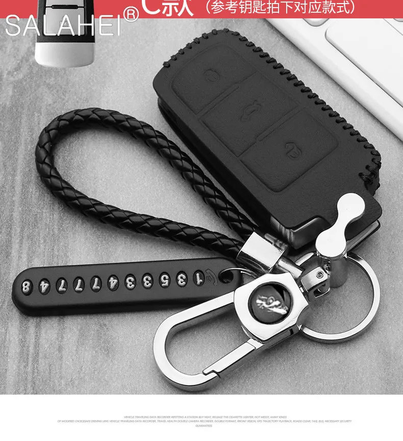Чехол для автомобильного ключа, кожаный, для VW Volkswagen, Polo, Golf 6, 7, MK7, Tiguan, Passat B6, 3C, B7, B8, Magotan CC, Skoda Octavia, Kodiaq, Karoq, A7