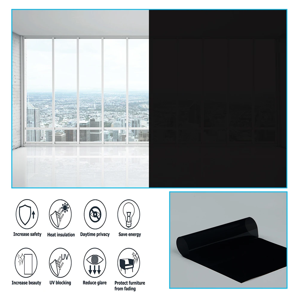 SUNICE Stickers Window Film Raamfolie 5%VLT Black Nano Ceramic Tints Home Decor Building Glass Foils Covering Heat Insulation