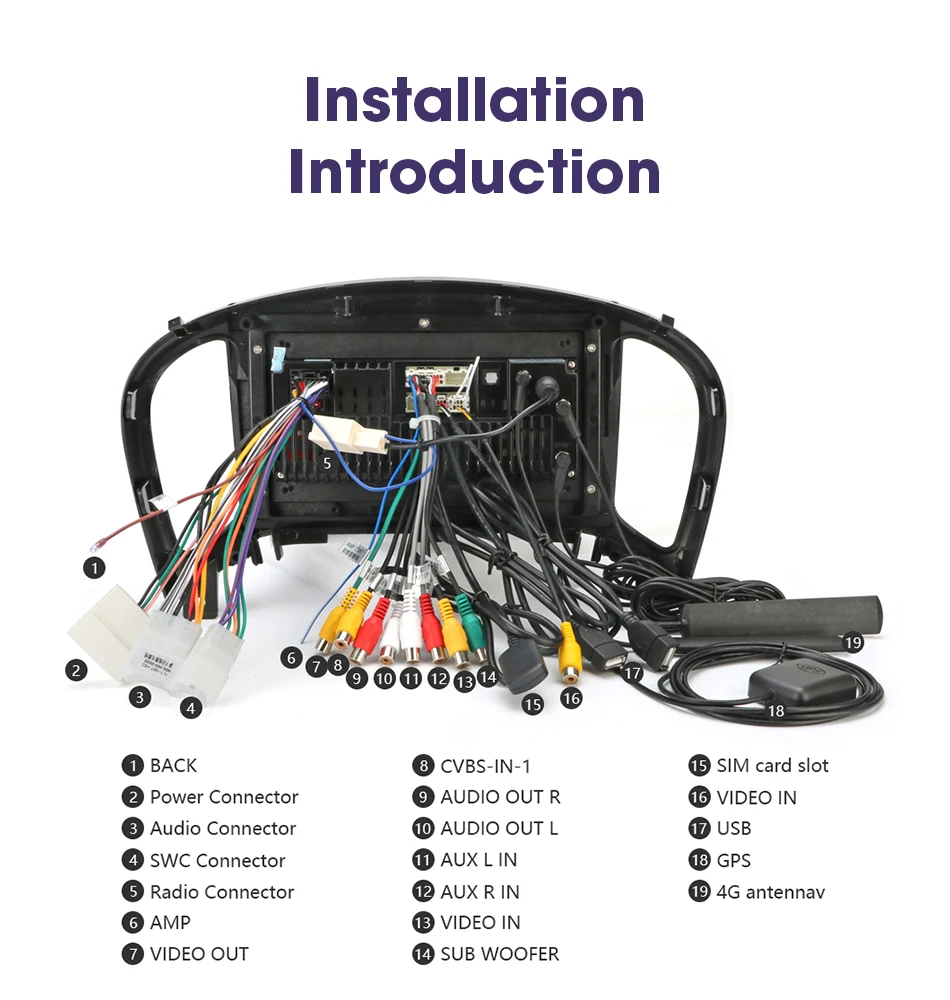Примечание: Пожалуйста, используйте наши кабели питания для подключения нашего автомобильного радио, невозможно вставить оригинальную автомобильную вилку непосредственно в нашу машину.