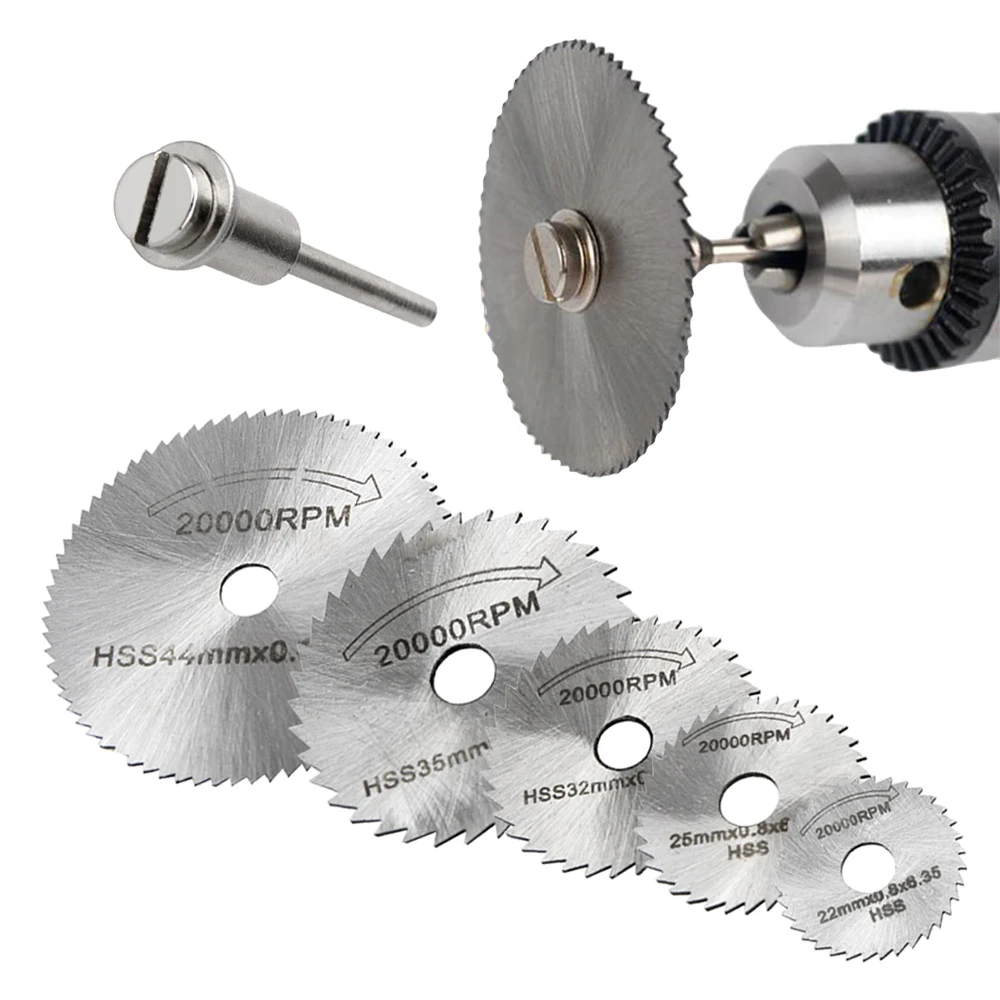 Лезвия для мини циркулярной пилы из быстрорежущей стали, 6 шт., режущий диск, электросверло, 22 мм, 25 мм, 32 мм, 35 мм, 44 мм, лезвия для пилы с соединительной рукояткой 3,17 мм