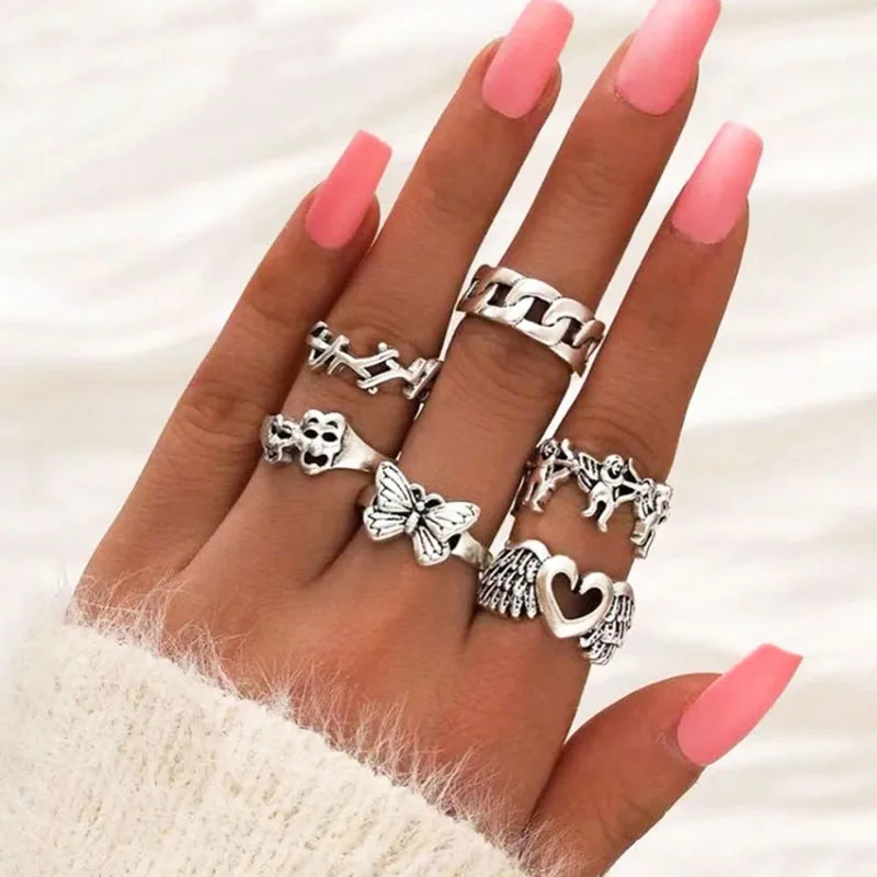 Набор женских колец в стиле панк, 10 шт., винтажные регулируемые, с...