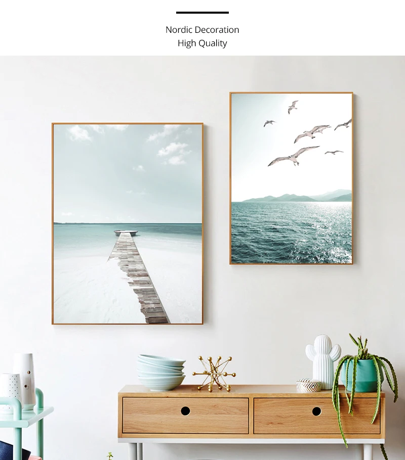 Спокойный и бесконечный океан, морской холст, скандинавские плакаты...