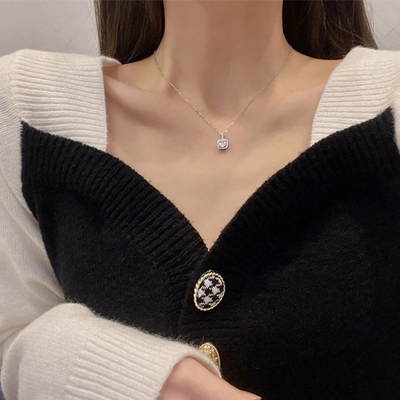 Новинка, набор серебряных сверкающих ожерелий из искусственного циркония, круглые кулоны из циркония, подарок для женщин, чокер NK114ER036