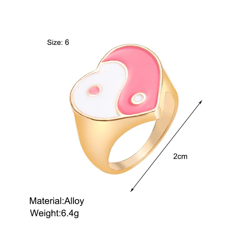 Y2K винтажное эмалированное кольцо в форме сердца, индивидуальные к...