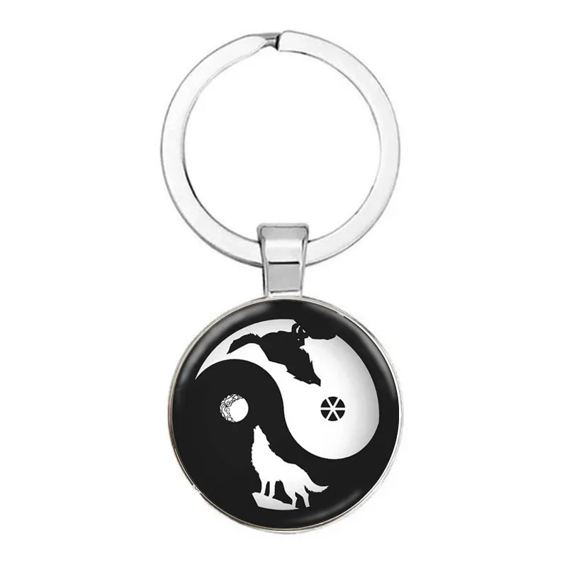 Модный брелок в стиле ретро, 25 мм, со стеклянными драгоценными камнями, модные ювелирные изделия, черно-белые драгоценные камни времени волка для мужчин и женщин, брелки для автомобиля