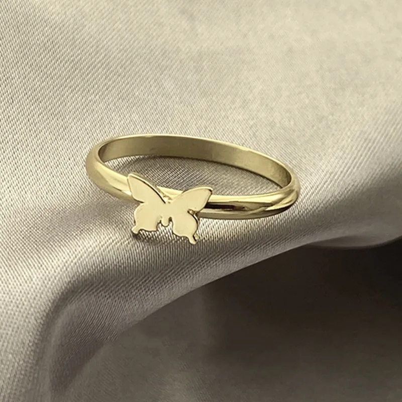 Модные открытые кольца для помолвки и свадьбы с золотой бабочкой