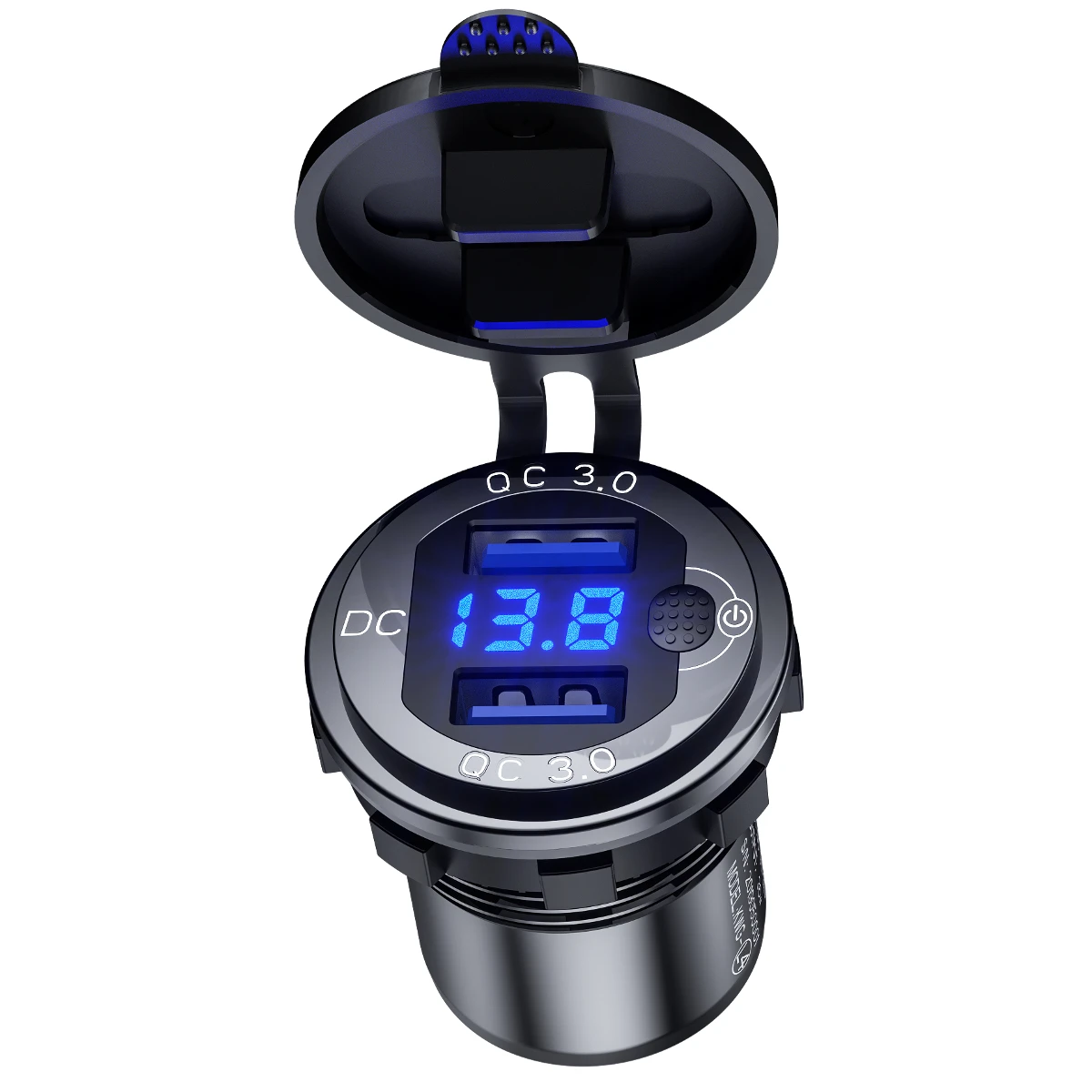 Двойное зарядное устройство QC 3,0 USB адаптер для розетки питания светодиодный вольтметр для автомобиля мотоцикла RVs лодки автобуса