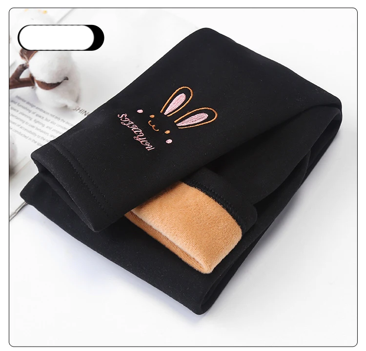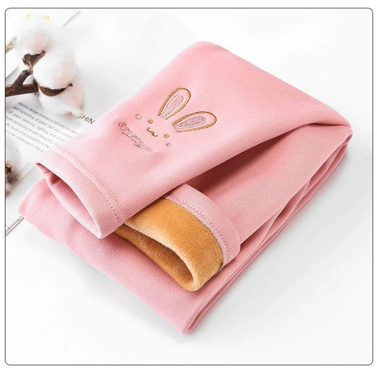 Корейские осенне-зимние плотные милые теплые брюки с кроликом, корейские леггинсы с флисовой подкладкой, бархатные брюки для девочек, детские леггинсы, брюки
