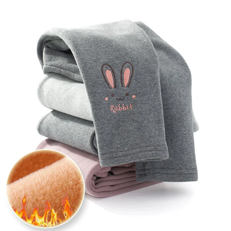 Детские зимние леггинсы с кроликом, на весну и осень, с бархатной п...